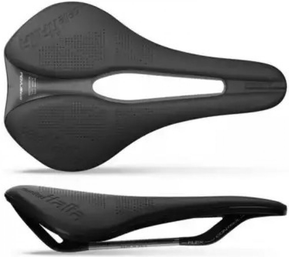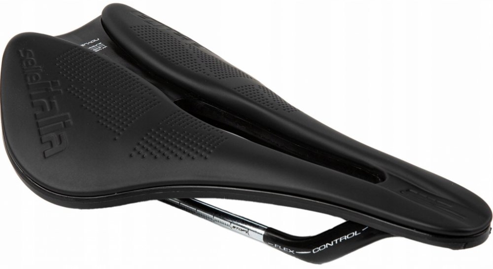 Závodní sedlo Selle Italia v oblíbeném prodyšném Superflow tvaru s ergonomickým tvarováním.