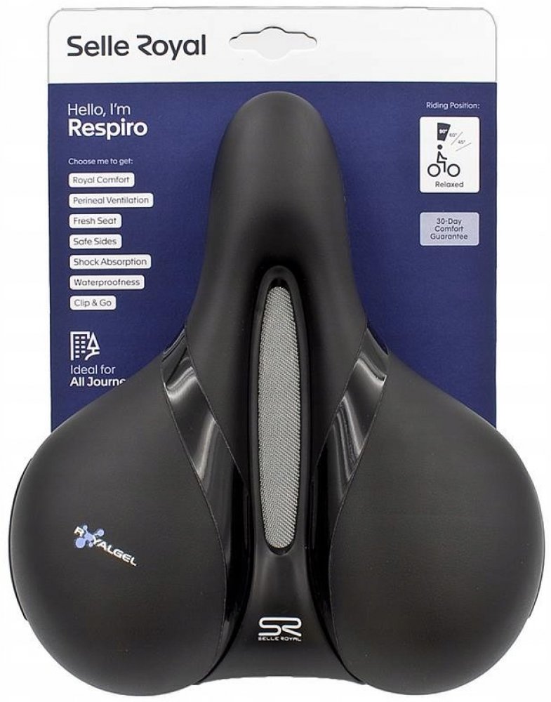 Pro dokonalý komfort během dojíždění do práce, ale i výletů za hranice všedních dnů je sedlo Respiro takovým čerstvým závanem vzduchu. Jako top model značky Selle Royal nabízí Respiro osvěžující pocit během jízdy díky unikátnímu širokému větracímu otvoru, který pomáhá ve ventilaci a zmenšení tlaku na citlivé oblasti. Inovativní potah sedla odráží sluneční záření a udržuje tak nižší teplotu na povrchu sedla, zatímco polstrování Royalgel poskytuje optimální podporu a přizpůsobuje se všem pohybům těla za jízdy.
