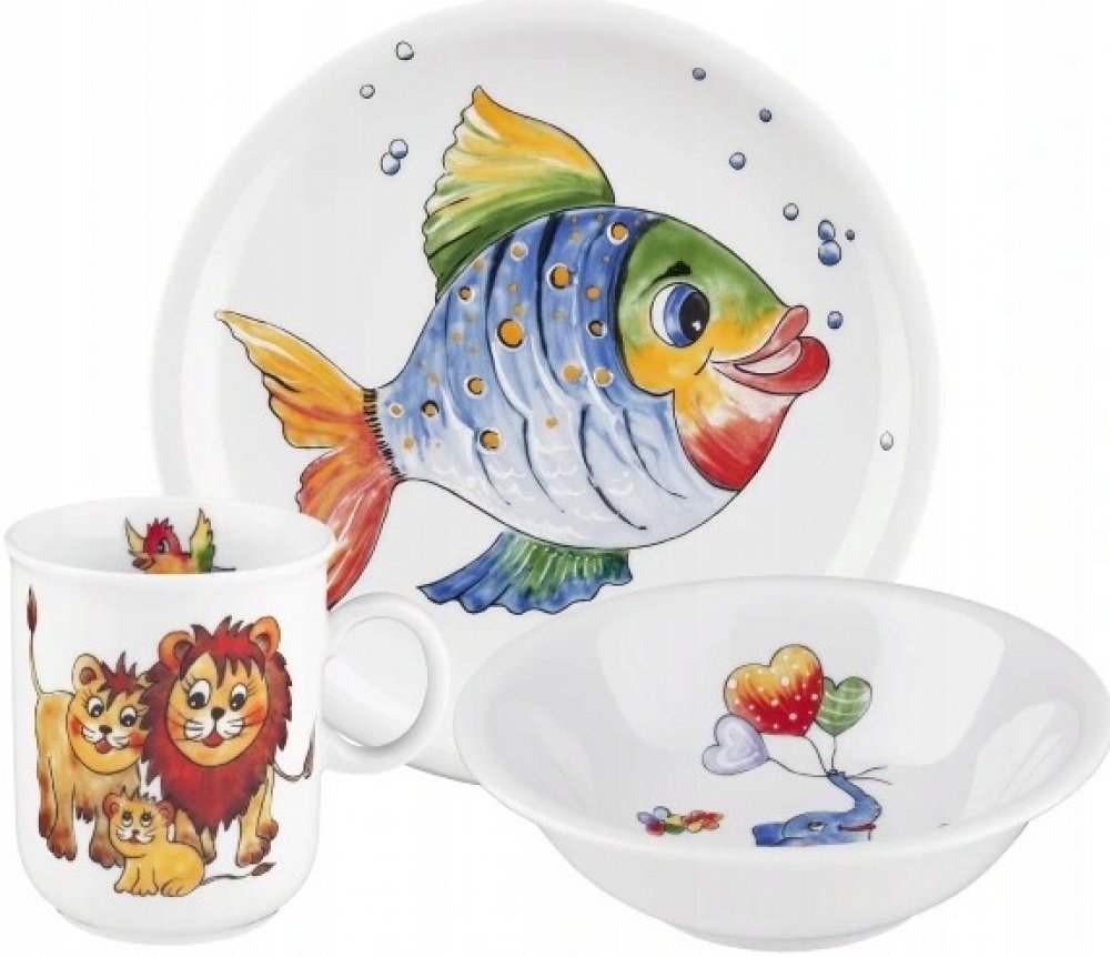 Sada dětského porcelánu s motivy pestrobarevných zvířátek, které vykouzlí úsměv na tváři nejen dětí.