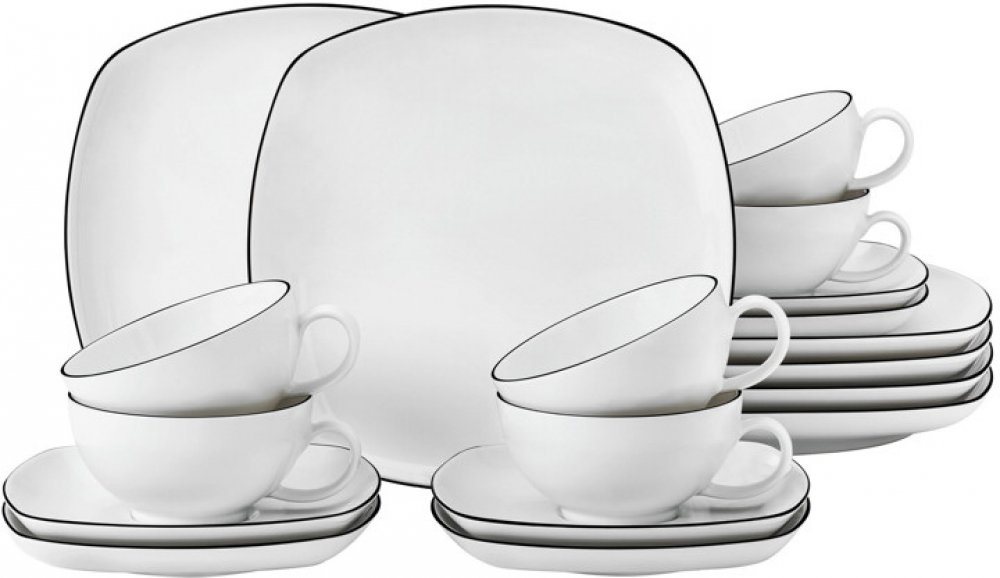 Seltmann Weiden Velká čajová sada hranatá LIDO BLACK LINE černá 18 ks