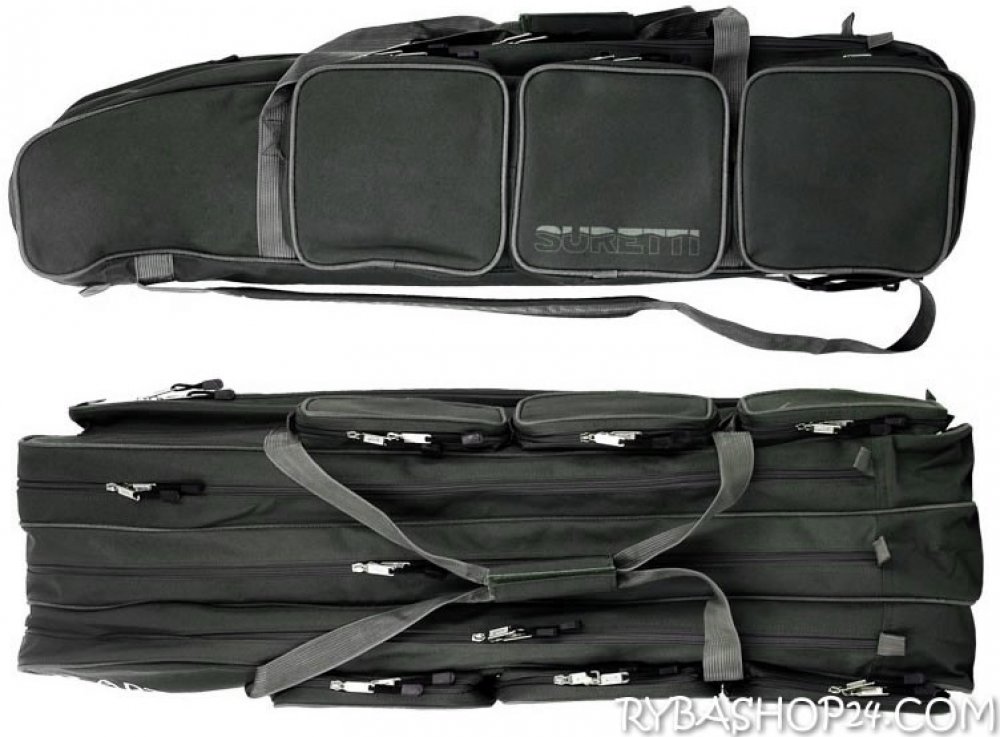 SURETTI Obal na pruty dvoukomorový je ideálním řešením pro rybáře, kteří chtějí mít své pruty vždy bezpečně uložené a připravené k akci. S jeho pomocí snadno přepravíte svou výbavu na jakékoliv rybářské místo.