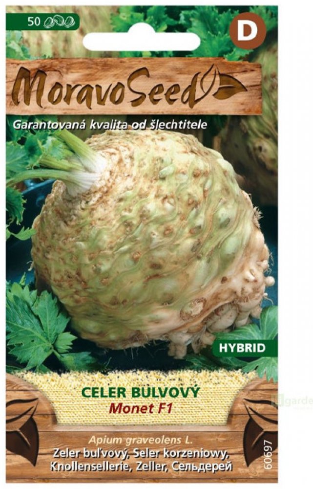 Semena celeru bulvového Monet F1 od Moravo Seed obsahuje 50 semínek. Vegetační doba pro sklizeň natě je cca 90 dní, pro skladování kořene až 135 dní.