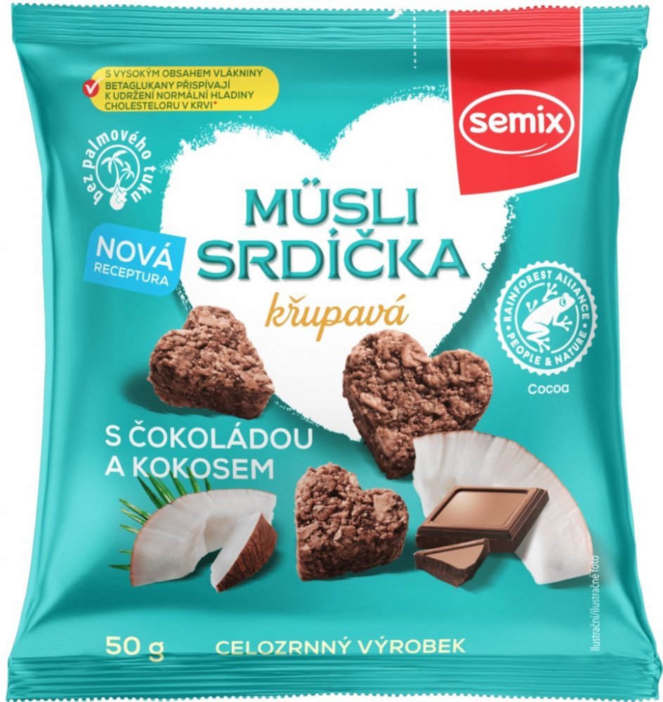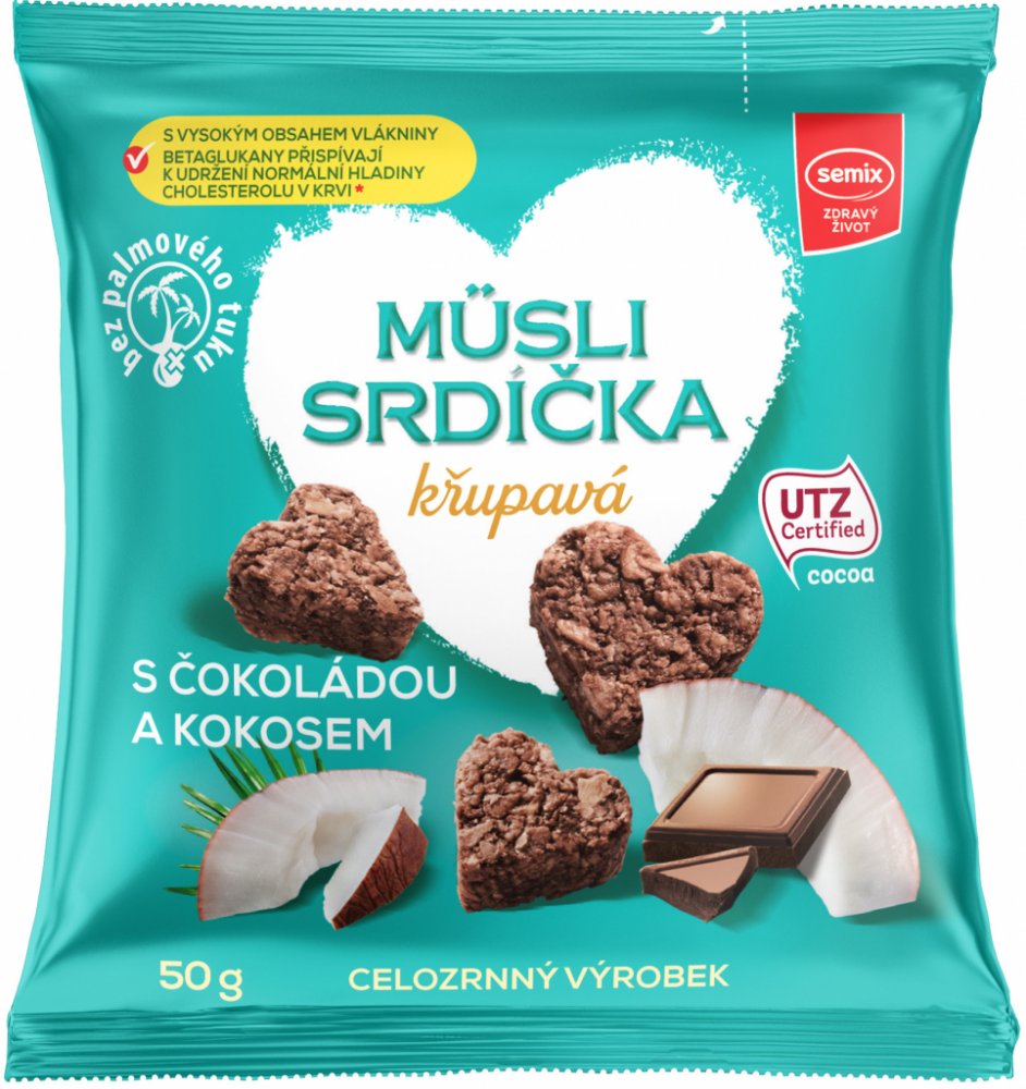 Semix Musli srdíčka křupavá s čokoládou a kokosem 50 g