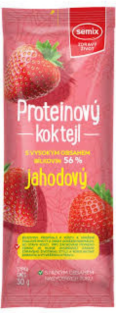 Složení: syrovátkový proteinový koncentrát (obsahuje emulgátor: sójový lecitin) 62 %, sušené odtučněné mléko, sladidlo (xylitol, sukralóza), sušené jahody 5 %, sušený jogurt, aroma, zahušťovadlo (karagenan), barviva (koncentrát z červené řepy). Může obsahovat stopy lepku, skořápkových plodů, vajec a sezamu.
