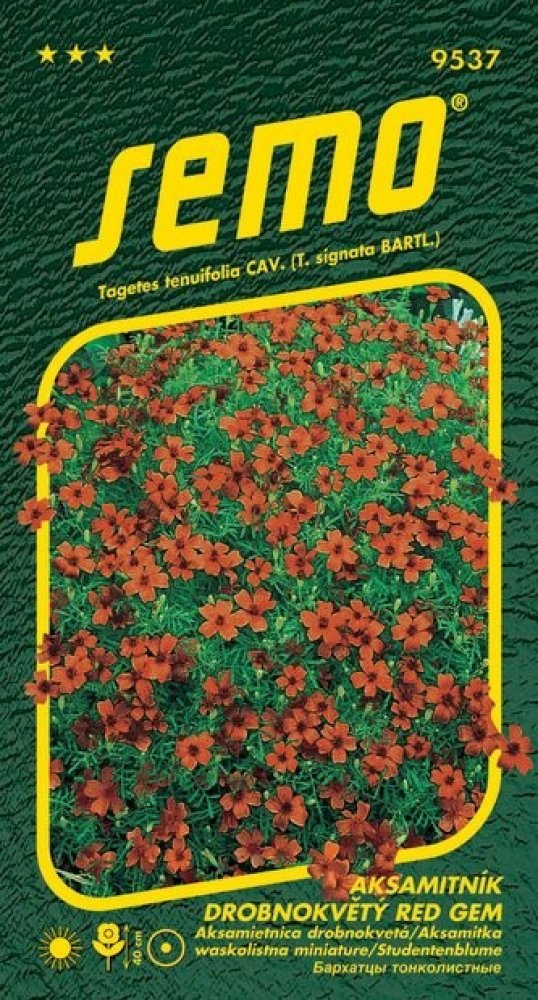 \nTagetes tenuifolia Cav. (syn.Tagetes signata Bartl.) / Aksamietnica drobnokvetá\nODRŮDA: Aksamitník červený - drobnokvětý 0,2g (9537)\nPopis:Letnička s jemně vykrajovanými listy používaná především
