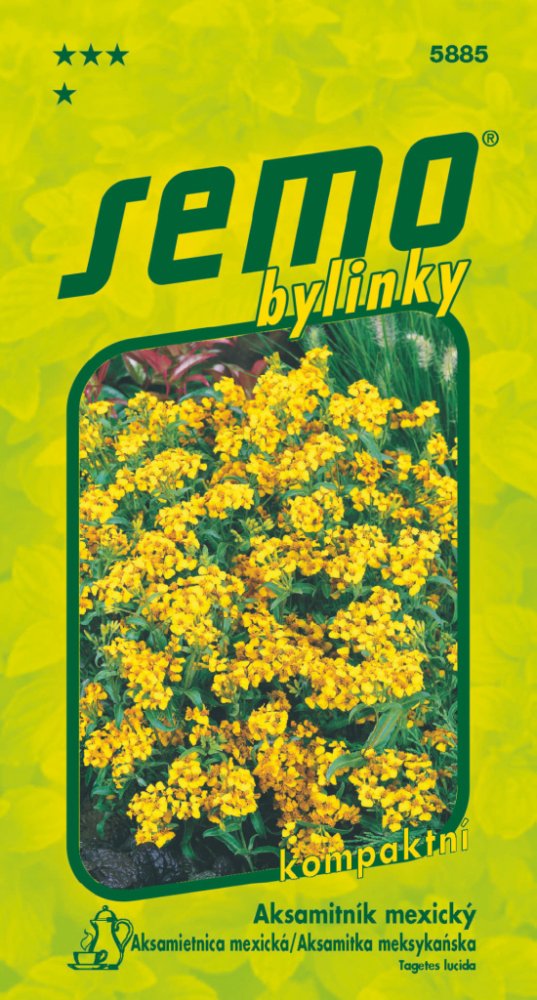 Příjemně aromatická cca 40 cm vysoká letnička. Tradičně se užívá čaj z aksamitníku pro zklidnění žaludku, k celkovému uvolnění a druhého dne jako rychlá pomoc po prohýřené noci. Nálev z celé rostliny se pije při bolestech břicha nebo se přidává do koupele při revmatických onemocněních. Potlačuje paranoidní stavy, využít ho můžete i při podávání silnějších stimulujícíh látek. Před řízením motorového vozidla mexický tarragonový čaj (ani jiné lektvary z něj připravené) raději neužívejte, mohl by Vás sice před jízdou uklidnit, ale třeba až moc a možná i navždycky. Květy i listy, z chemicky neošetřovaných, doma vypěstovaných rostlin, můžeme používat čerstvé i sušené. Přidáváme je i do omáček, polévek, salátů, používají se na masová i zeleninová jídla. Kuřata ochucená tímto kořením jsou vynikající a chuťově nedostižná.