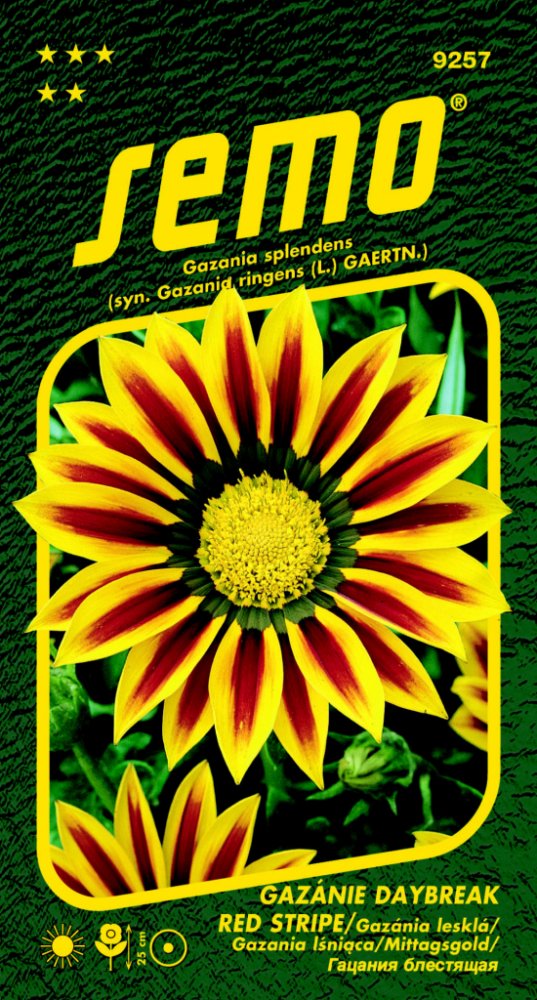 Letnička vhodná pro ucelenější výsadby na letničkové záhony, do skalek i do truhlíků. Má kopinaté, vespod stříbřité listy a kopretinovité jednoduché úbory. Vysazujeme na plně osluněné a sušší stanoviště. V polostínu, na noc a za deště se květní úbory zavírají. Výška 25 cm, žluté květy s podélnými červenými pruhy. Výjimečná odrůda je držitelem ocenění FLEUROSELECT GOLD MEDAL.