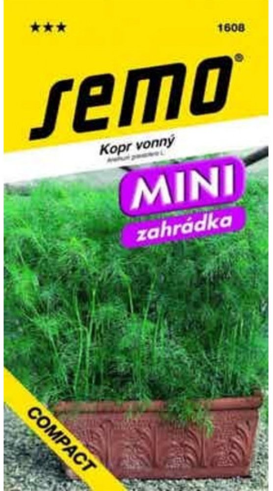 -- Kopr vonný Compact Kompaktní odrůda určená pro pěstování v truhlících či jiných nádobách. Vyniká jemnou kořenitou chutí a bohatou zelenou hmotou. Rostlina je nízká, v plném růstu 30 – 40 cm vysoká, bohatě olistěná s tmavě zeleným listem. Sklízíme celé rostliny, když dorostou výšky 15 až 20 cm. Sklizenou nať lze dobře sušit ve stínu, při umělém dosoušení nesmí teplota překročit 35 °C.