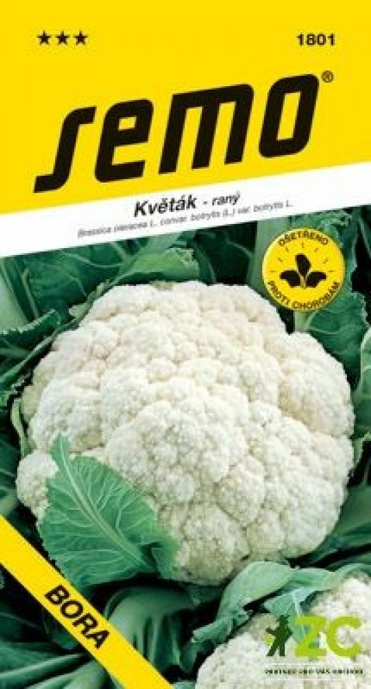 BORA (kód 1801) – velmi raná odrůda pro nejranější jarní polní pěstování ze sadby. Růžice je střední, smetanově bílá, částečně zakrytá, o průměrné hmotnosti 370 g. Je odolná proti fialovění, při velmi slunečném počasí je třeba ve sklizňovém období zalamovat listy, aby nedocházelo k výraznému žloutnutí růžic. Sklizňové období je konec května až polovina června. Vyžaduje intenzivní závlahu za největšího růstu a před sklizní. Vegetační doba 104 – 112 dní.