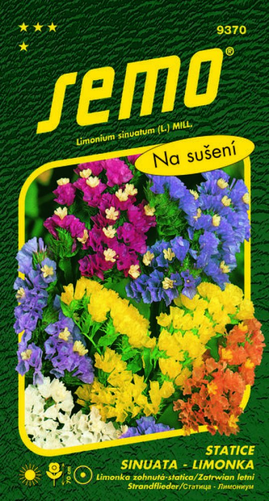 \nLimonium sinuatum / Limonka zohnutá - statica Popis:Vzpřímená, hustě větvená letnička určená převážně na sušení. Tvoří přízemní růžici kopinatých laločnatých listů a drobné květy v hustých květenst