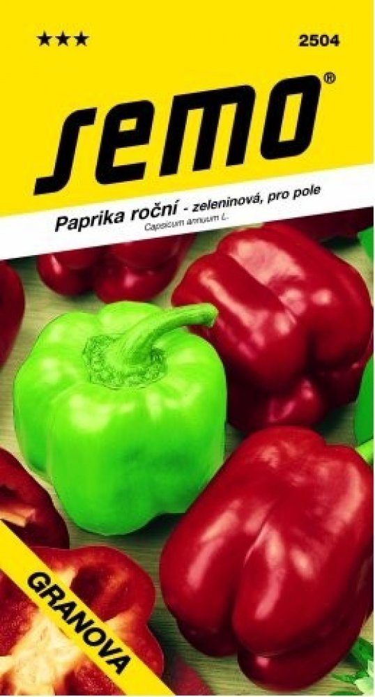 GRANOVA - středně pozdní polní odrůda. Lusk je lichoběžník, s tupým koncem, má ploché, mírně hluboké žebrování. V technické zralosti je světle zelený, v botanické červený. Dužnina je silná, nepálivá, jemná, aromatická. Vegetační doba je 140 dnů do technické zralosti, 173 dnů do botanické zralosti. Ze 100 m2 lze sklidit 280 - 320 kg plodů v technické zralosti, 280 - 300 kg lusků v botanické zralosti. Má všestranné použití, je vhodná pro přímý konzum i průmyslové zpracování.