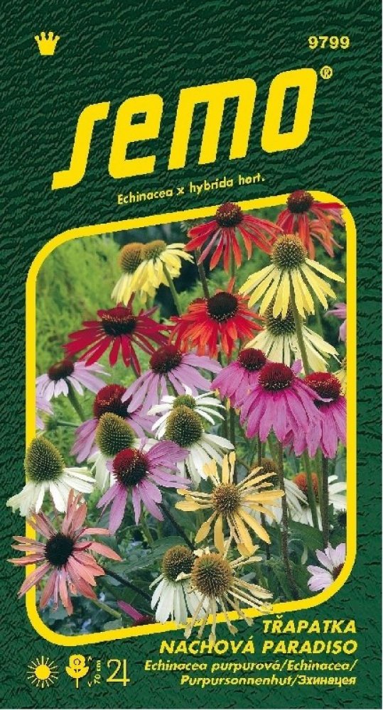 Mohutná, trsnatá trvalka pro výsadby na záhony, řez květů i sušení vystouplých středových terčů soukvětí. Nejlépe se jí daří na slunci, v humózní a propustné půdě. Rostliny jsou silné a odolné vůči suchu. Absolutní novinka mezi třapatkami! Směs botanických druhů a jejich hybridů, které v sobě skrývají skutečná překvapení. Semenáče se liší barvou květu, výškou rostliny i typem květenství. Když budete mít štěstí, najdete mezi nimi skutečné unikáty.
