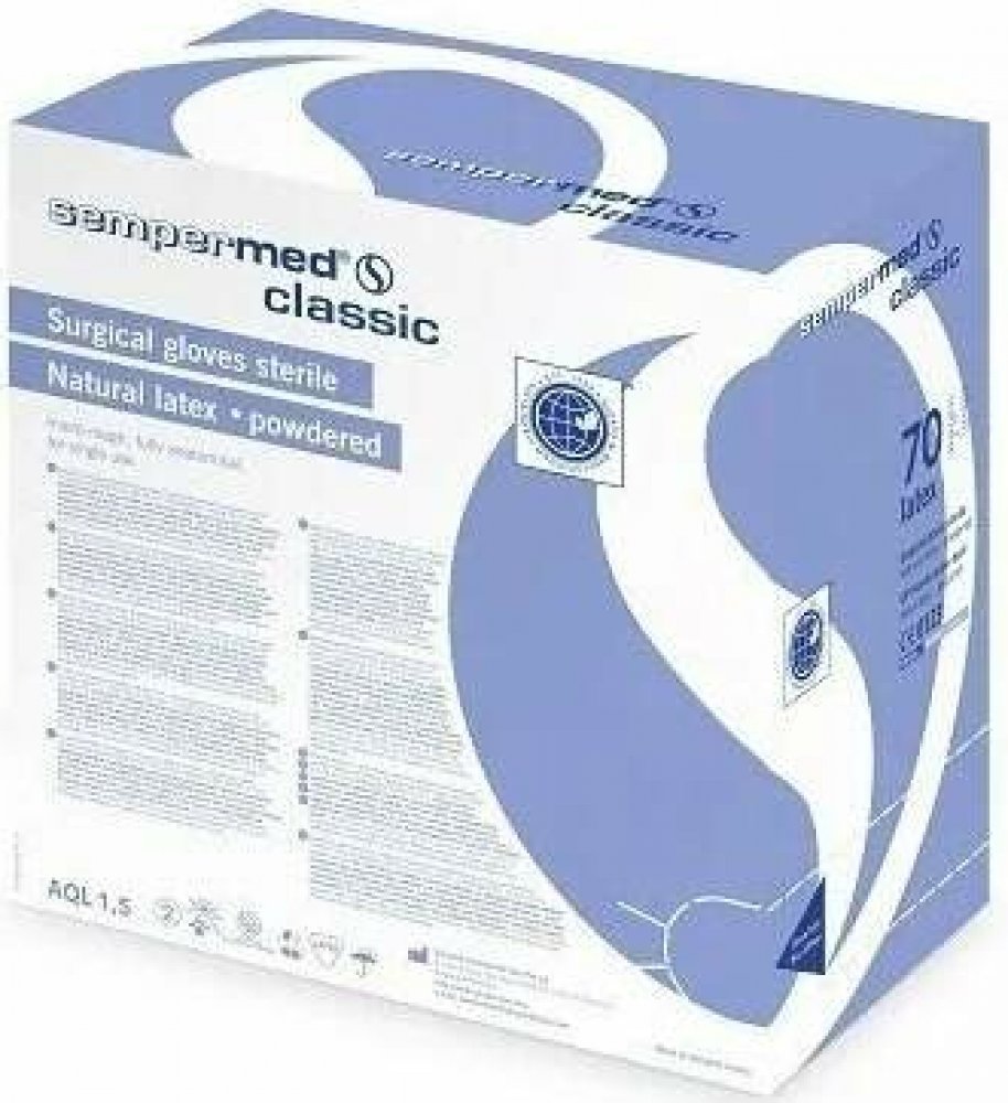 Rukavice sterilní, zatavené v balení po párech, přírodní latex, bezpudrové, se syntetickou vnitřní vrstvou, přírodně bílá
