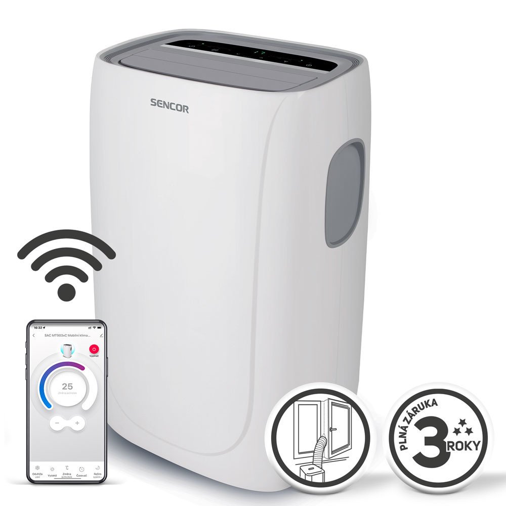 Rozlučte se s pocitem nepříjemného horka a vychutnejte si skvělý pocit chladivého osvěžení. Představuji se jako Sencor mobilní klimatizace SAC MT9030C a nabízím efektivní ochlazení v nadčasovém designu, který padne do domácnosti i kanceláře. Navíc umožňuji snadné přenášení pomocí rukojeti a 4 integrovaných koleček, aby manipulaci zvládl absolutně každý, a to velmi snadno. Mou důležitou výhodou je možnost ovládání pomocí Wi-Fi a mobilního telefonu, což zajišťuje vaše maximální uživatelské pohodlí.