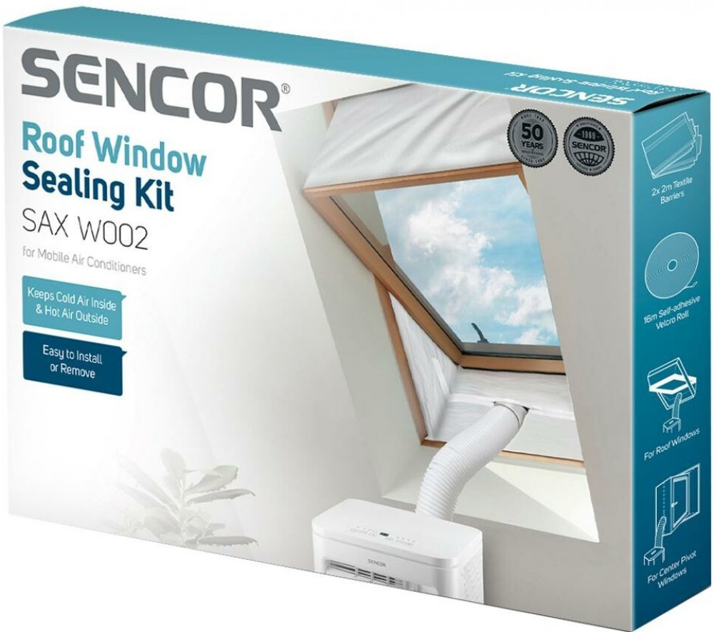 Těsnění do oken SENCOR SAX W002 Skládá se ze 2 textilních bariér a samolepicí role zipu Textilní zábrana se zipem délky 2 m / šířky 39 cm v nejširším místě Textilní zábrana bez zipu délky 2 m / šířky …