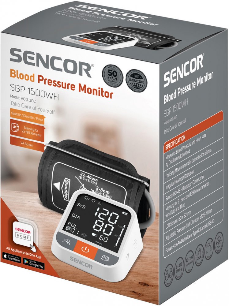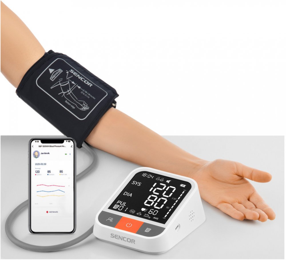 Sencor bílé kombinované 199 měření na paži s flexibilním napájením (baterie + adaptér) pro detekci arytmií/ECG pro páry (2 profily) oscilometrické automatické 22 - 42 cm univerzální 57 - 255 mmHg 40 - 199 tep/min 119 g 108 x 139 x 62 mm pro zálohování v cloudu