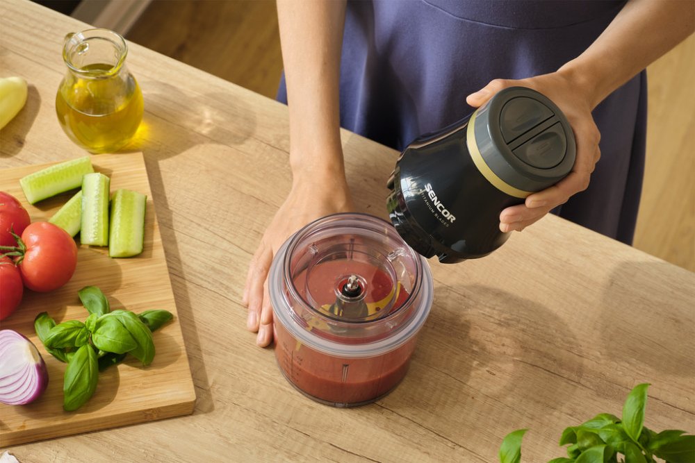 Elektrický sekáček Sencor bude dobrým pomocníkem pro nakrájení či sekání surovin při přípravě pokrmů. SENCOR SCB 4000BK s příkonem 400 W zvládne nakrájet, nasekat, namíchat či umixovat cibuli, rajčata a jinou zeleninu a ovoce. Plastová nádoba Umělohmotná nádoba bez BPA disponuje objemem 1000 ml, pojme více druhů zeleniny naráz a jednoduše tak připravíte např. najemno sekaný salát. Vybírat můžete z...