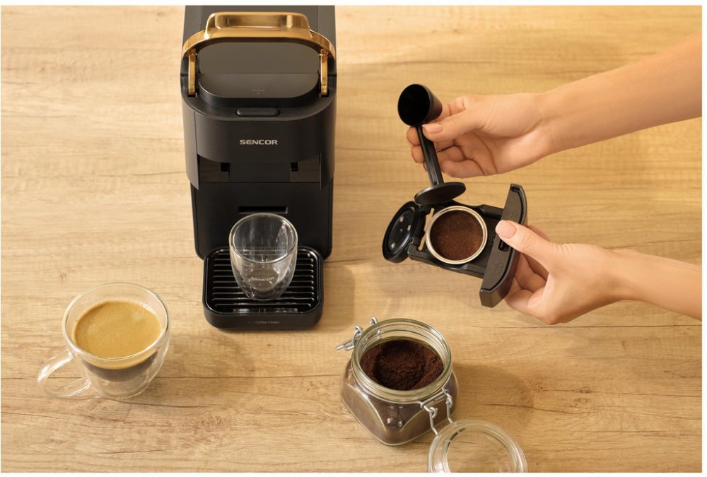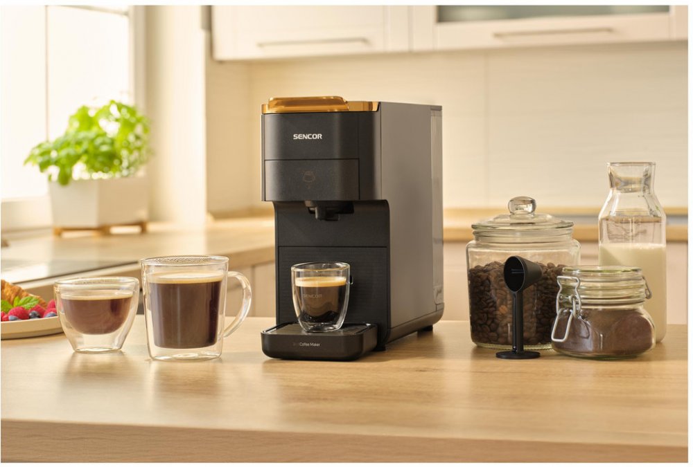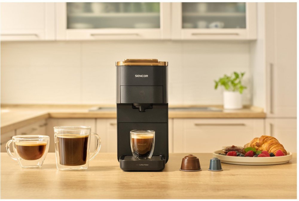 Krásný designový kávovar, hodící se na každou kuchyňskou linku. Připraví chutnou kávu jak z různých druhů kapslí, tak z mleté kávy. Přiměřeně hlučný, skladný, káva je připravená za chvilku a nejen káva. Rozhodně doporučuji. Skvělý pomocník do kuchyně.