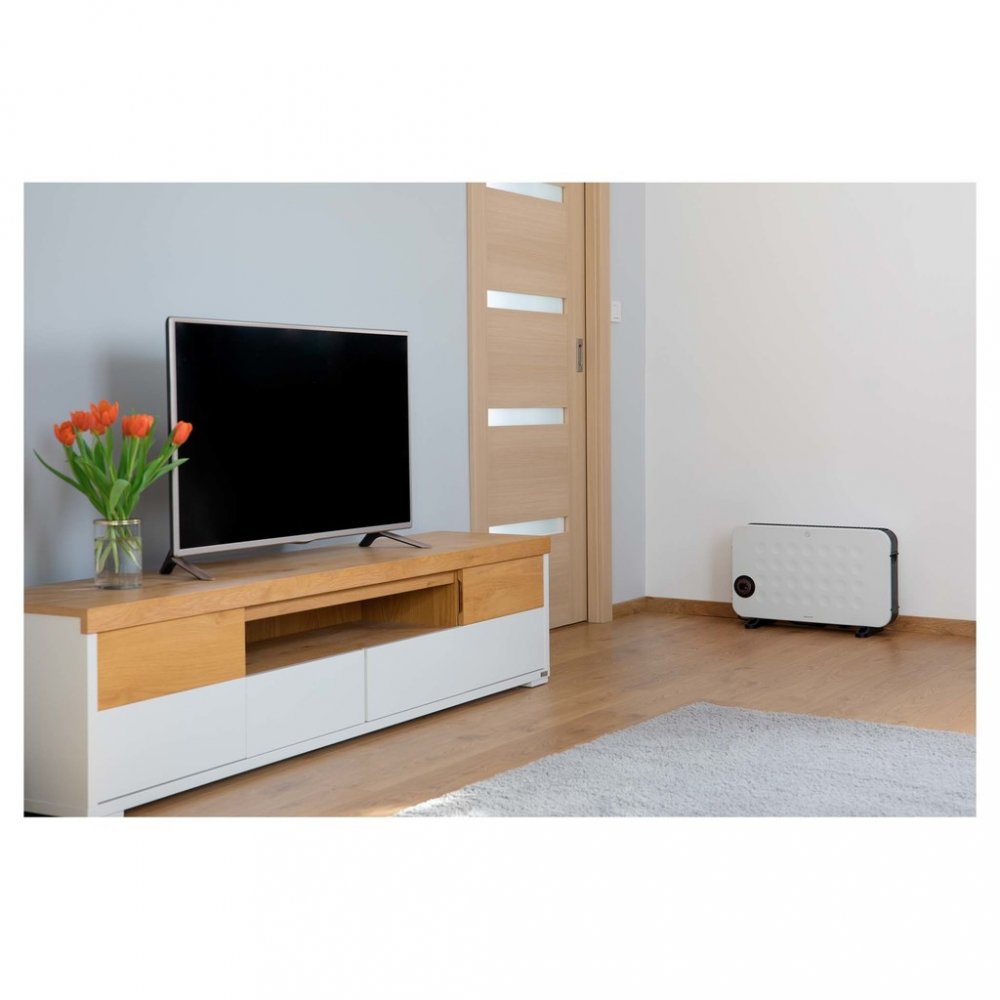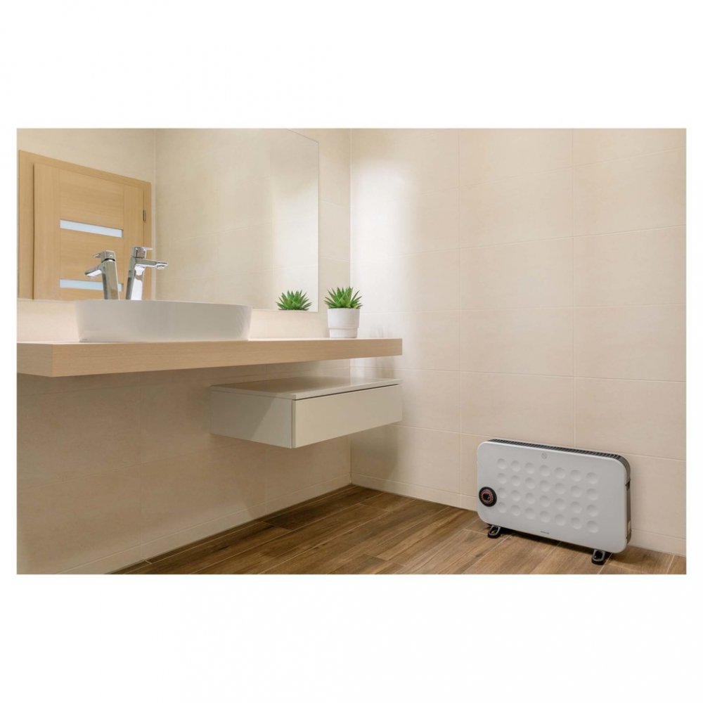 prachu, vlhkosti i vodě díky krytí IP24, takže jej můžete zcela bez obav umístit i do koupelny. Konvektor je pak vyrobený z kvalitních materiálů, které působí elegantně i v moderním interiéru, například v kanceláři či v obývacím pokoji.