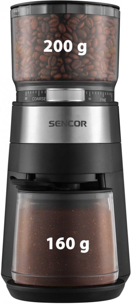 Sencor černá + stříbrná 30 200 g elektrické ploché mlecí kameny 140 W