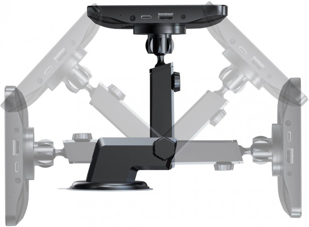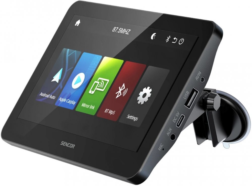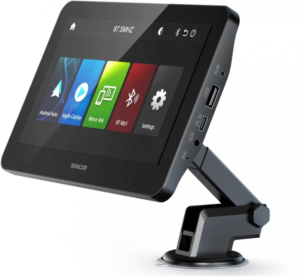 USB konektor zařízení nabízí zrcadlení telefonů a zároveň možnost přehrání filmů, videí, hudby či fotografií. Nabíjení přes USB konektor adapéru je samozřejmostí. Všestranné uchycení nabídne 360° držák s možností uchycení na čelní sklo nebo do mřížky ventilace. Propojení obrazovky a držáku je magnetické pro snadné nasazování a sundávání. Balení obsahuje také 12-24 V adaptér se dvěma USB porty, USB-C kabel, Jack 3,5mm kabel a couvací kameru.