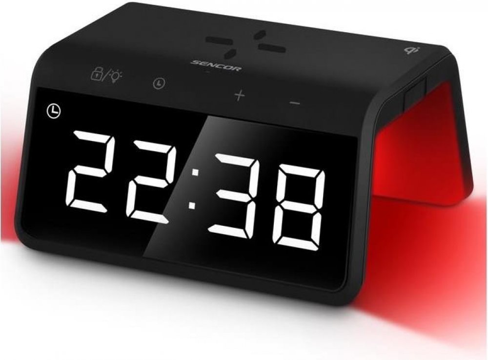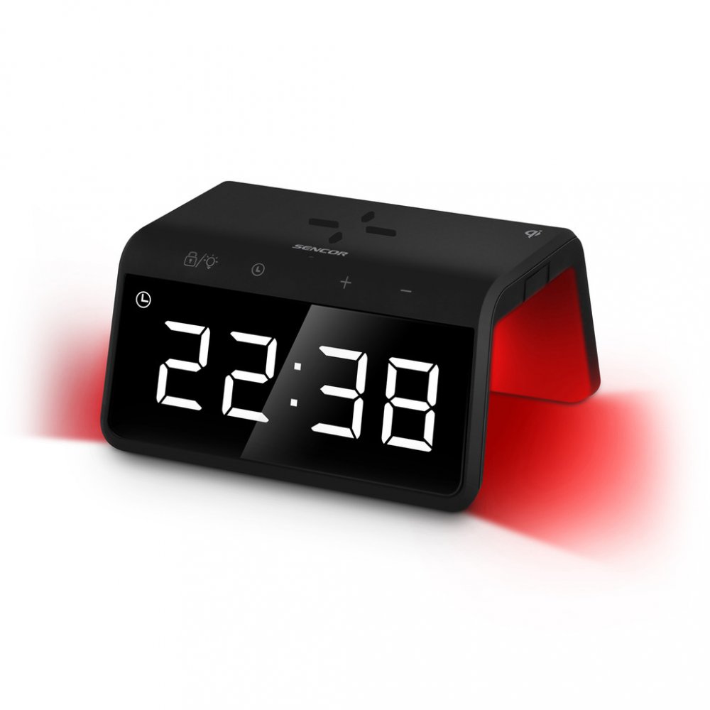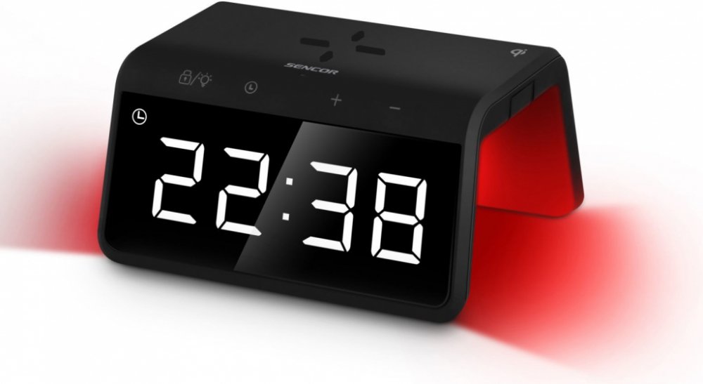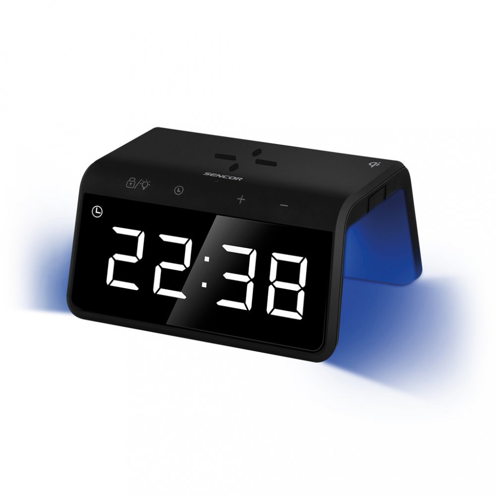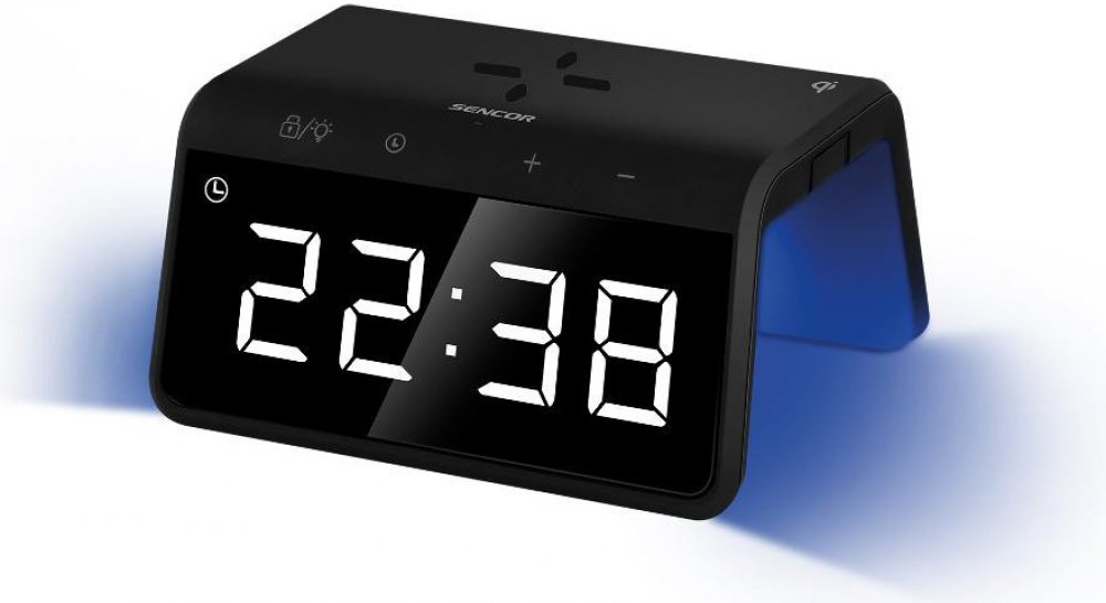 Digitální budík s rychlou bezdrátovou nabíječkou a barevným podsvícením