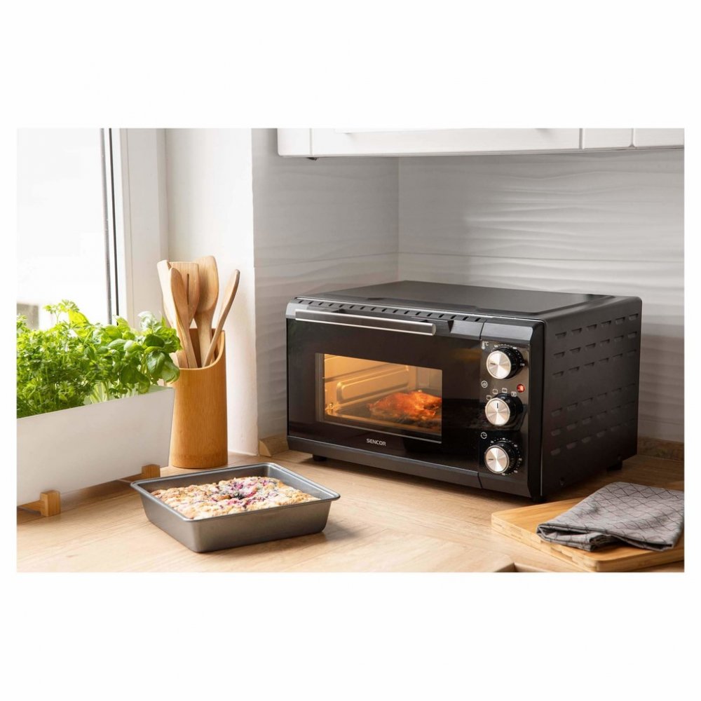 Elektrická trouba s objemem 20 litrů je ideální pro pečení, grilování i ohřívání pokrmů. S příkonem 1 350–1 650 W a plynulou regulací teploty v rozsahu 70–230 °C nabízí dostatek výkonu pro přípravu nejrůznějších jídel.Trouba disponuje čtyřmi volitelnými programy: horním ohřevem, spodním ohřevem, kombinovaným horním a spodním ohřevem a funkcí cirkulace vzduchu pro rovnoměrné pečení. Časovač s maxi...