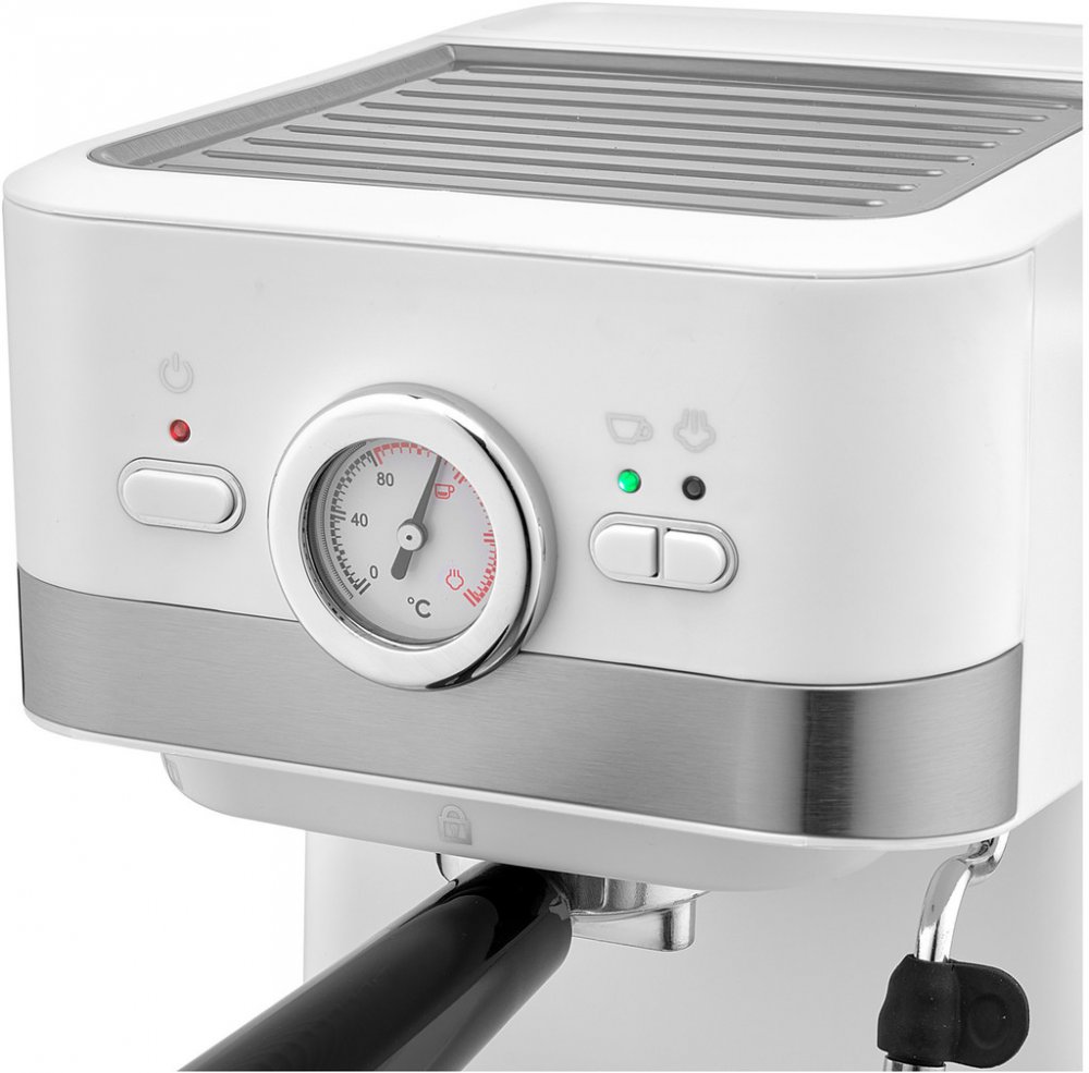 Intuitivní ovládání je obohaceno o ukazatel teploty vody v líbivém ručičkovém budíku. Na ovládání si nastavíte výdej kávy či režim pára / horká voda. Otočný knoflík na boku pak umožňuje regulaci páry. V případě jednoho šálku kávy (60 ml) po dokončení extrakce kávovar automaticky ukončí program. Manuální ovládání vám dopřeje individuální přípravu kávových nápojů.