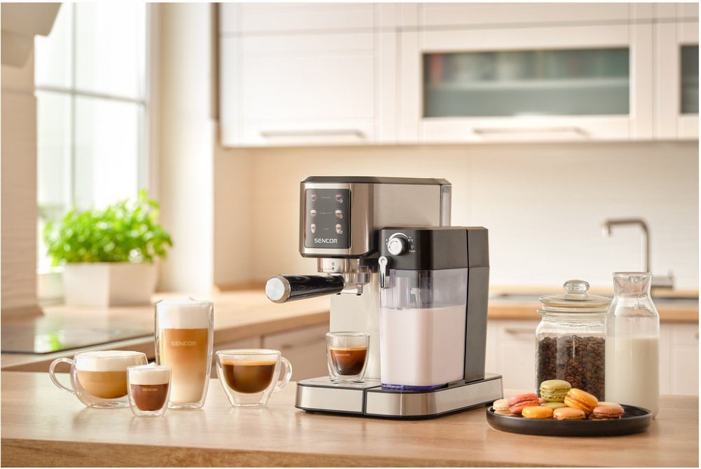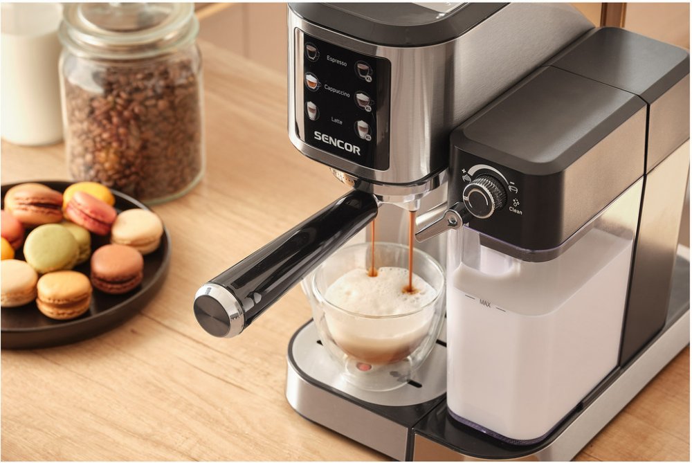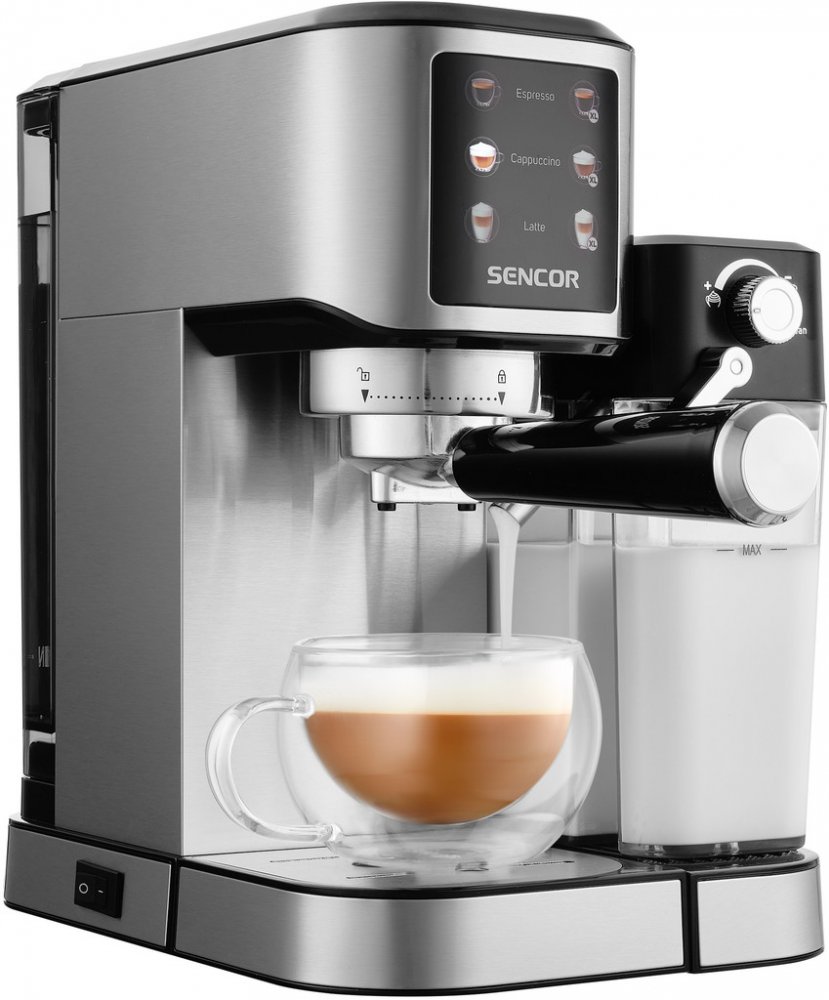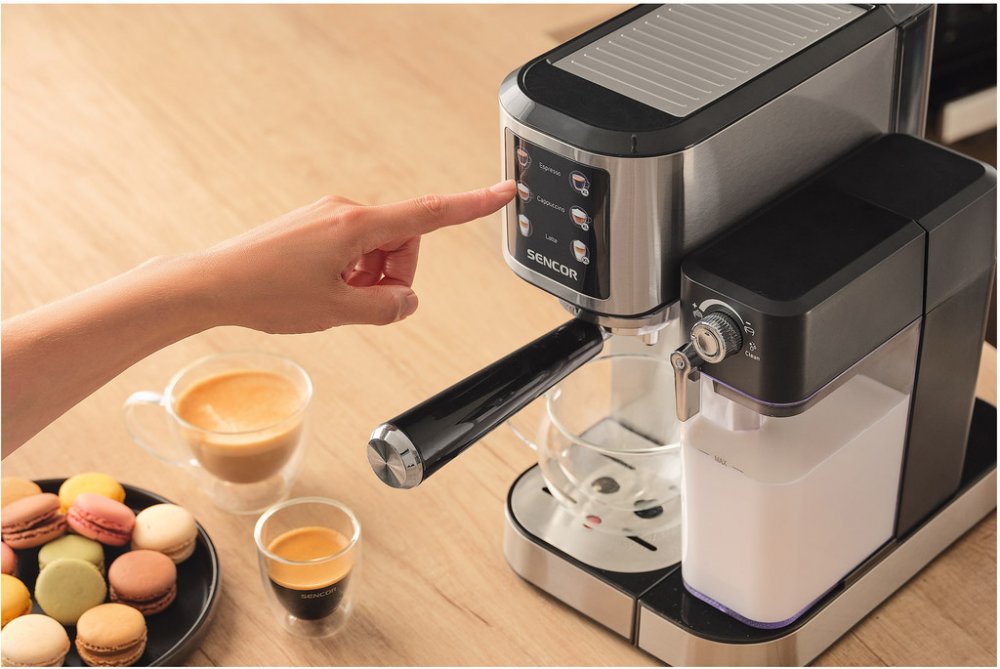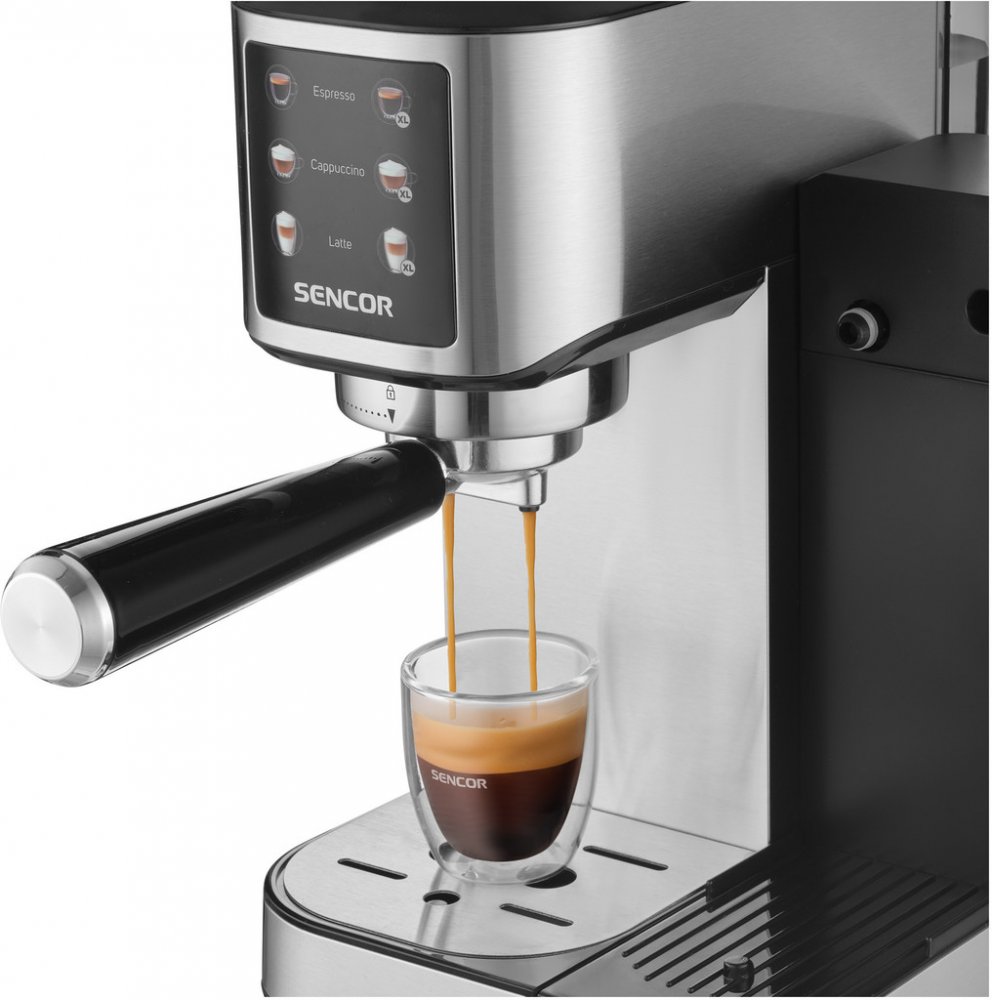 Sencor thermoblock současné napařování elektrické černé kompaktní CE 6 1 l vyjímatelná nádrž automatická karafa 2 1350 W 20 bar 4.8 kg 210 × 290 × 310 s vyústěním dvojitá výpusť
