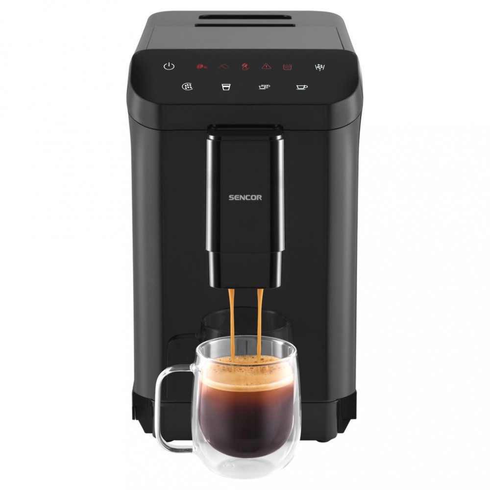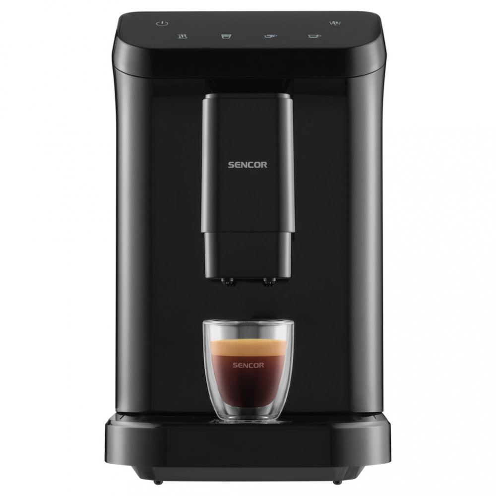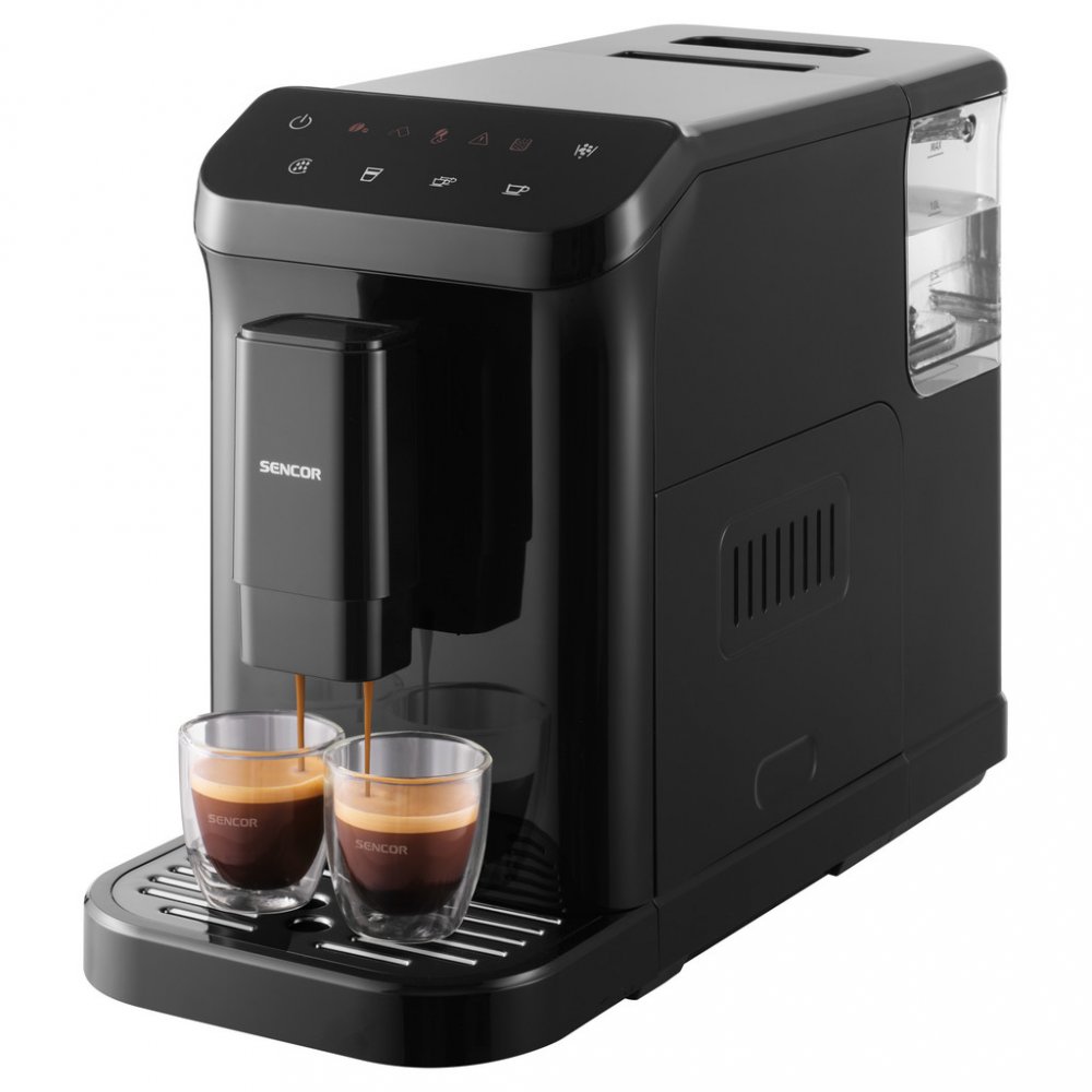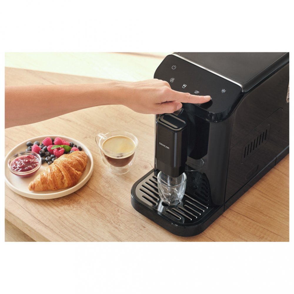 Sencor černá dotykové 20 bar 1.5 l 200 g ikony LED s nádržkou na vodu 1350 W ocelové 15 8.7 kg 32 cm 18.8 cm 43.5 cm se snadnou údržbou pro 1-2 osoby kompaktní 2 standardní
