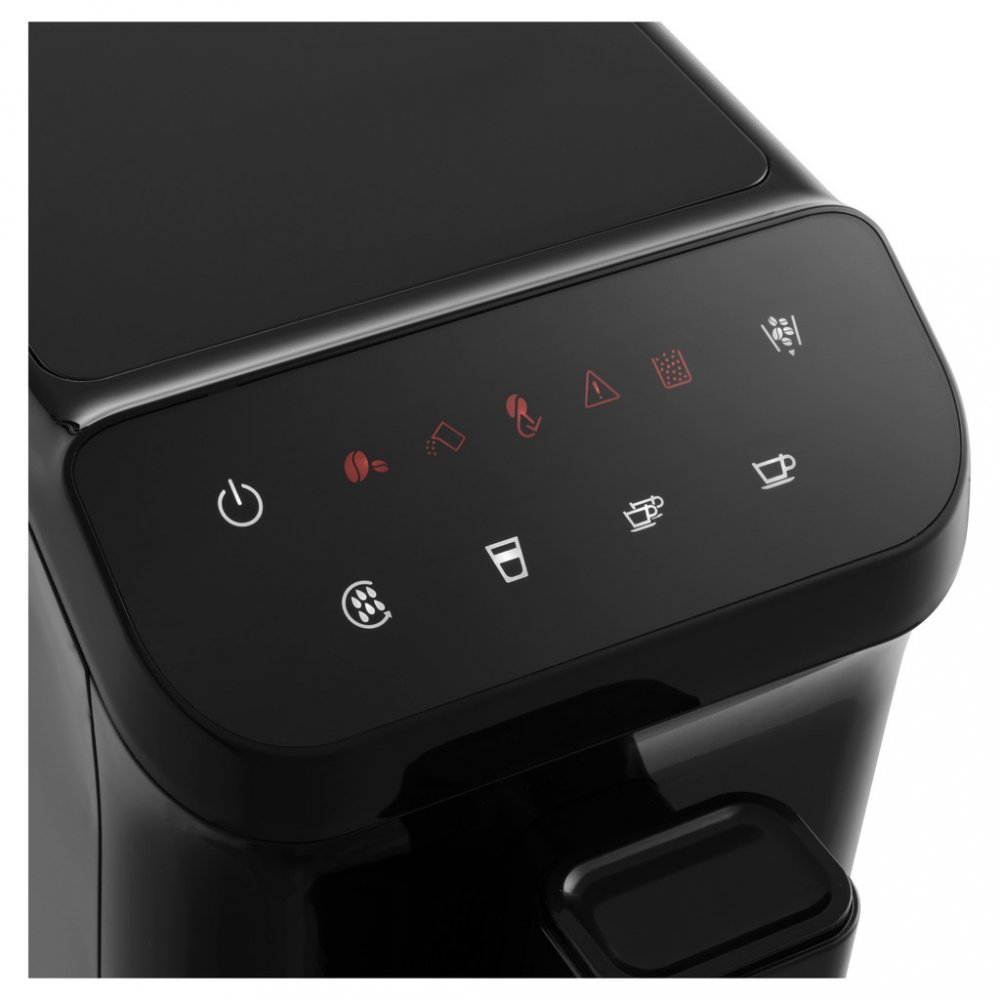 Plně automatický Espresso kávovar, LED panel, tlak 20 barů, funkce horké vody, mlýnek z nerezové oceli, 15 stupňů nastavení mletí kávy, zásobníku na kávu 200 g, nádržka na vodu 1,5 litru, předspaření