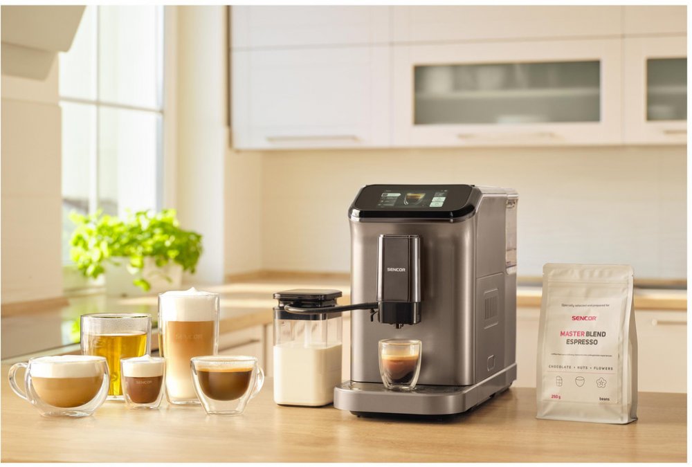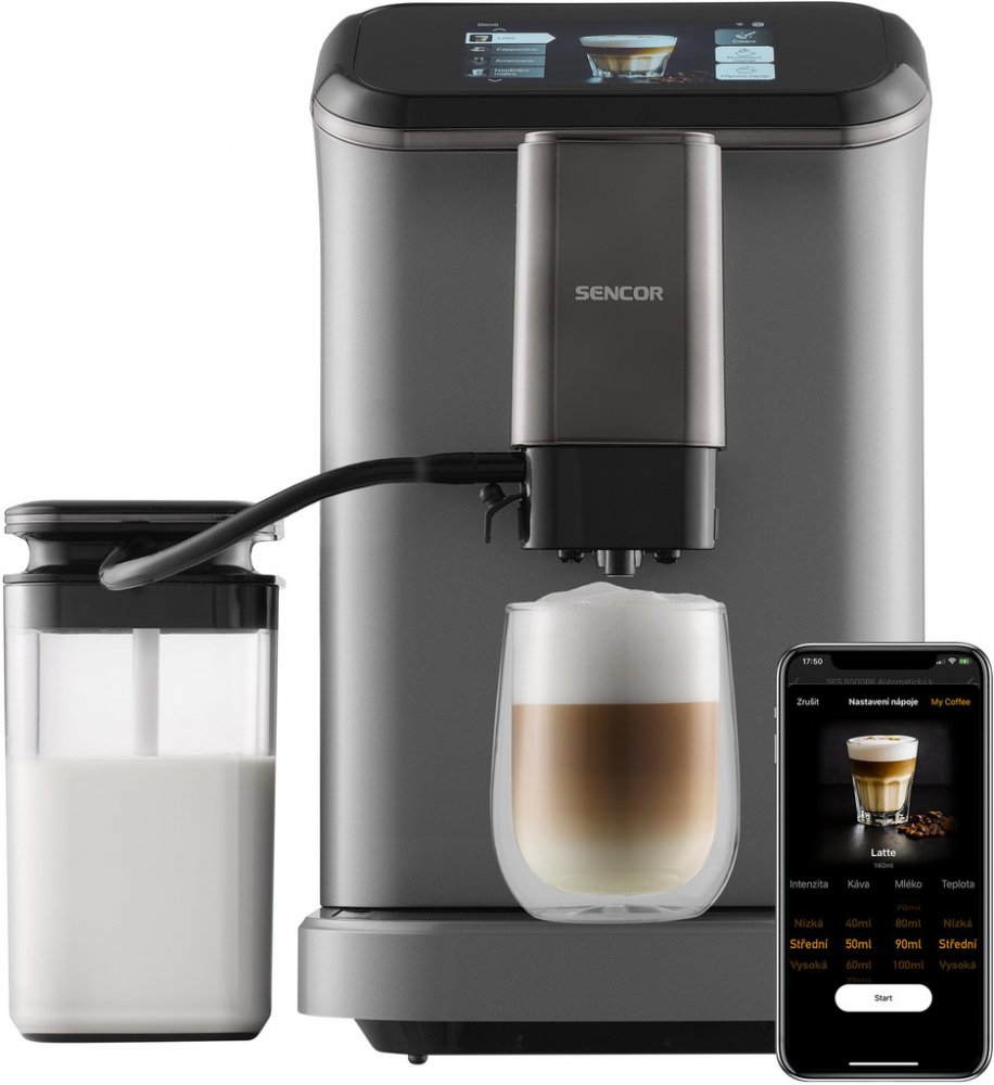 Vynikají espresso i cappuccino s krémovou pěnou, to vše a ještě mnohem víc zvládne na výbornou plně automatické espresso Sencor SES 8500BK. Maximálně oceníte přehledný dotykový TFT panel a rozhraní kompletně v českém jazyce. Samotné nastavení ještě usnadňuje podpora aplikace Sencor Home. Perfektní výsledky zaručuje výkonné 20barové čerpadlo v kombinaci se systémem ohřevu Thermoblock. Díky nastavitelným stupňům mletí si vždy připravíte kávu přesně podle svých představ.
