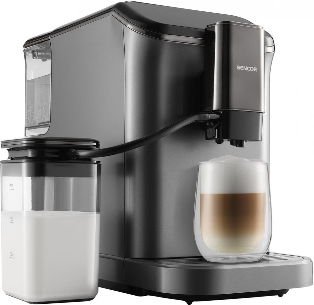 Sencor černá 1.5 l dotykové pro 1-2 osoby s integrovanou nádobou na mléko 20 bar 200 g 750 ml 1 barevný TFT displej s nádržkou na vodu 1350 W ocelové 15 8.7 kg 43.5 cm 19 cm 32 cm se snadnou údržbou kompaktní standardní