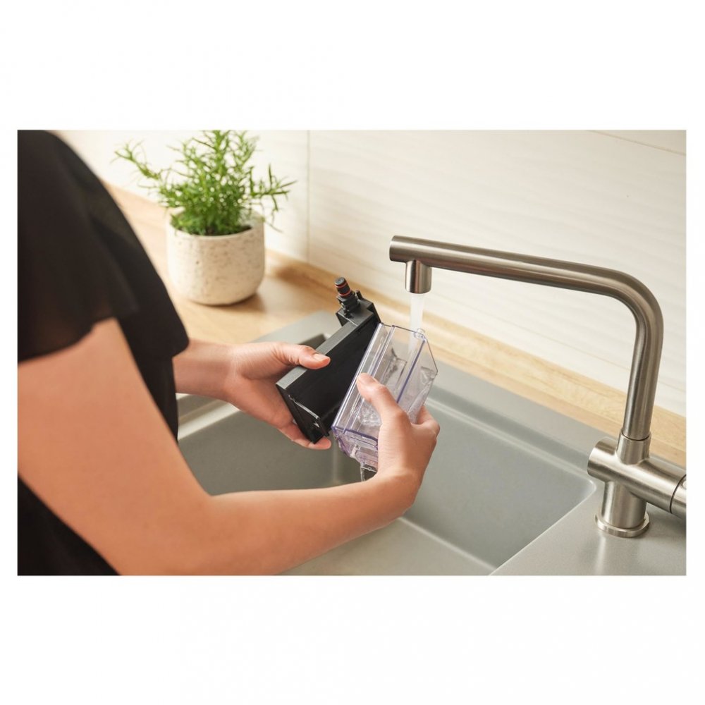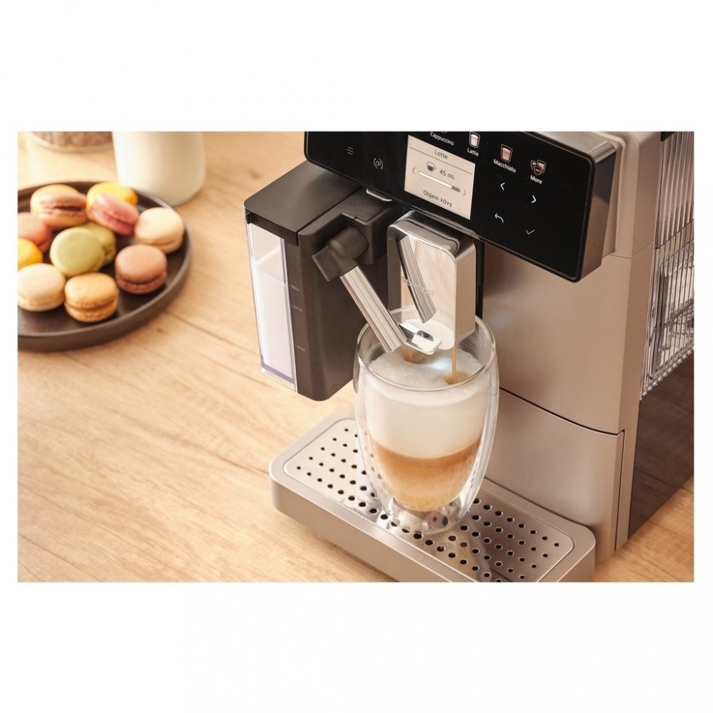 Sencor SES 9350CH disponuje mléčným systémem EasyLatte, který umožňuje přípravu lahodného latté a krémového cappuccina s mléčnou mikropěnou jediným dotykem. Odolná nádoba na mléko o objemu 300 ml zajistí dostatek mléka pro vaše oblíbené nápoje.
