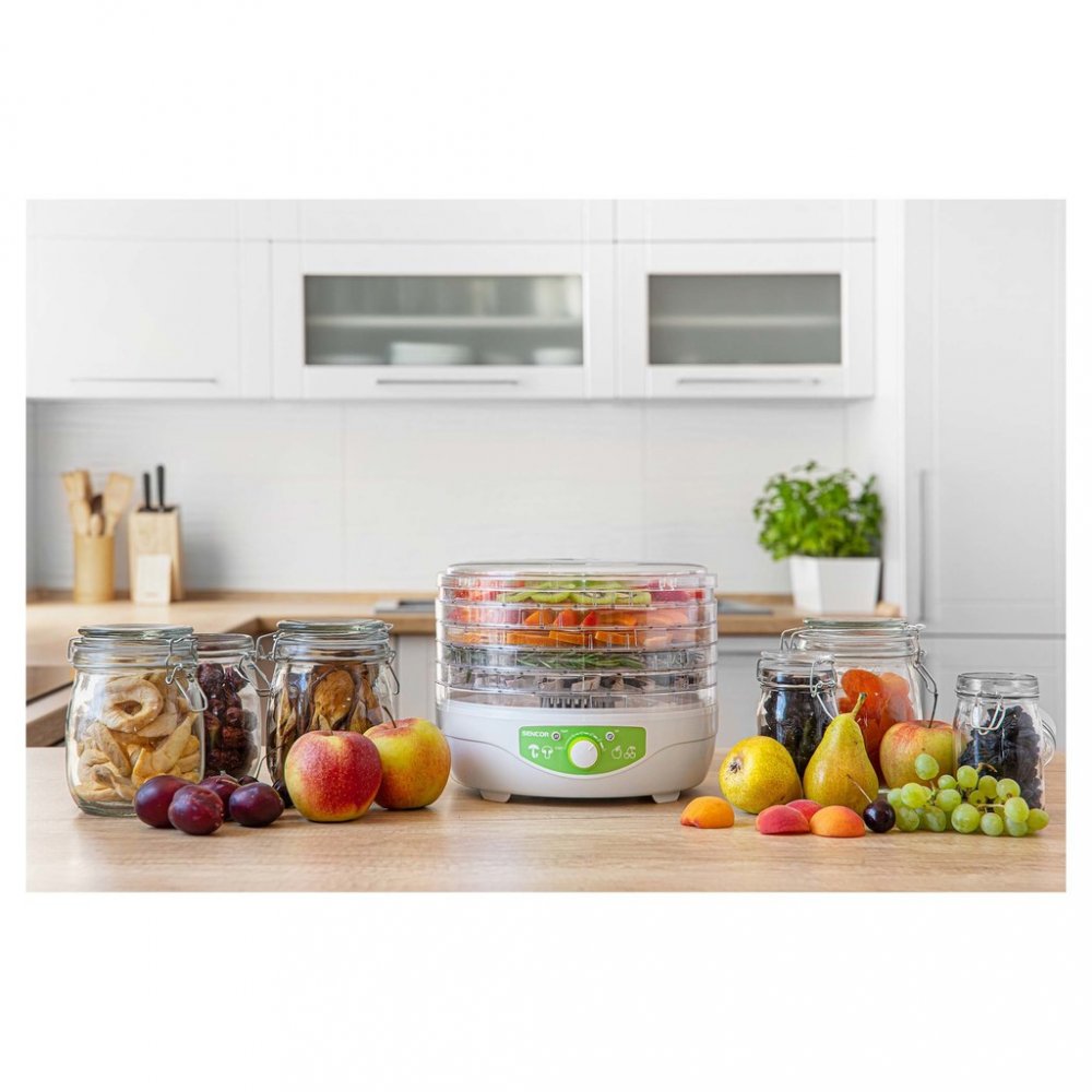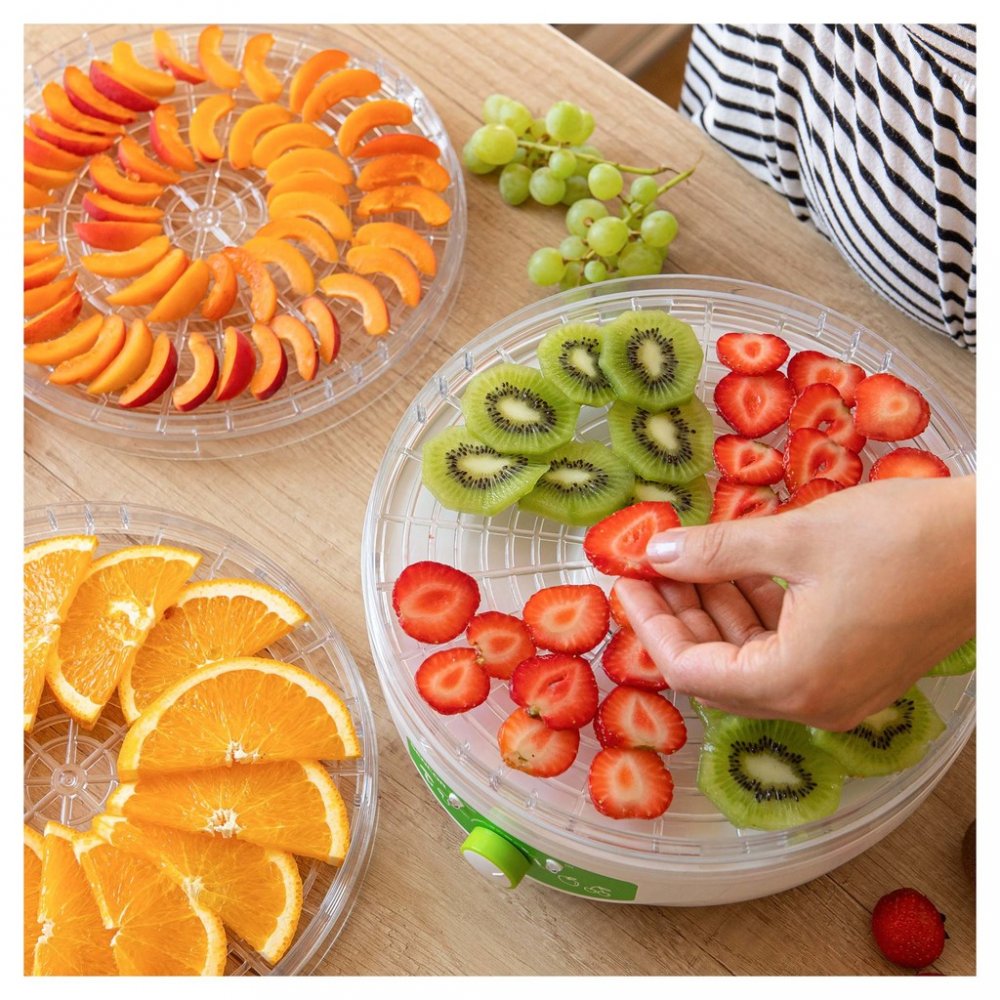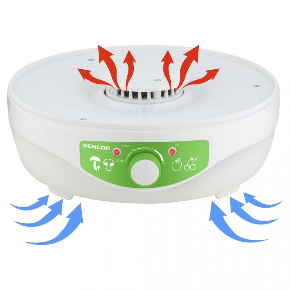 Sušička potravin vhodná k přípravě například: - sušeného ovoce (křížal, švestek, meruněk, banánů atp.) - rozinek - sušené zeleniny do polévek - sušených rajčat - sušených bylinek -bylinkových čajů (máta, lipový květ, heřmánek atp.) - sušených hub do polévek a pokrmů - sušených pomerančů na dekorace - sušených dýňových semínek - sušených okvětních lístků na vonné směsi - sušeného masa - sušených ry...