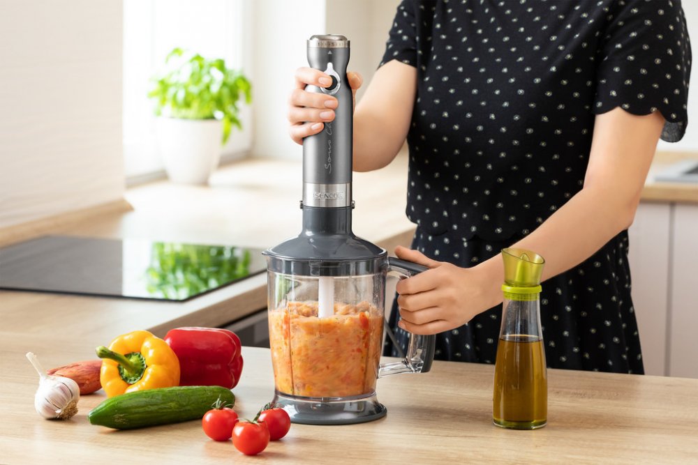 Horké i studené namixuje, našlehá a naseká se zachováním maximálního množství živin a vitamínů. 20 rychlostí, turbo tlačítko, ergonomická rukojeť, bohaté příslušenství.