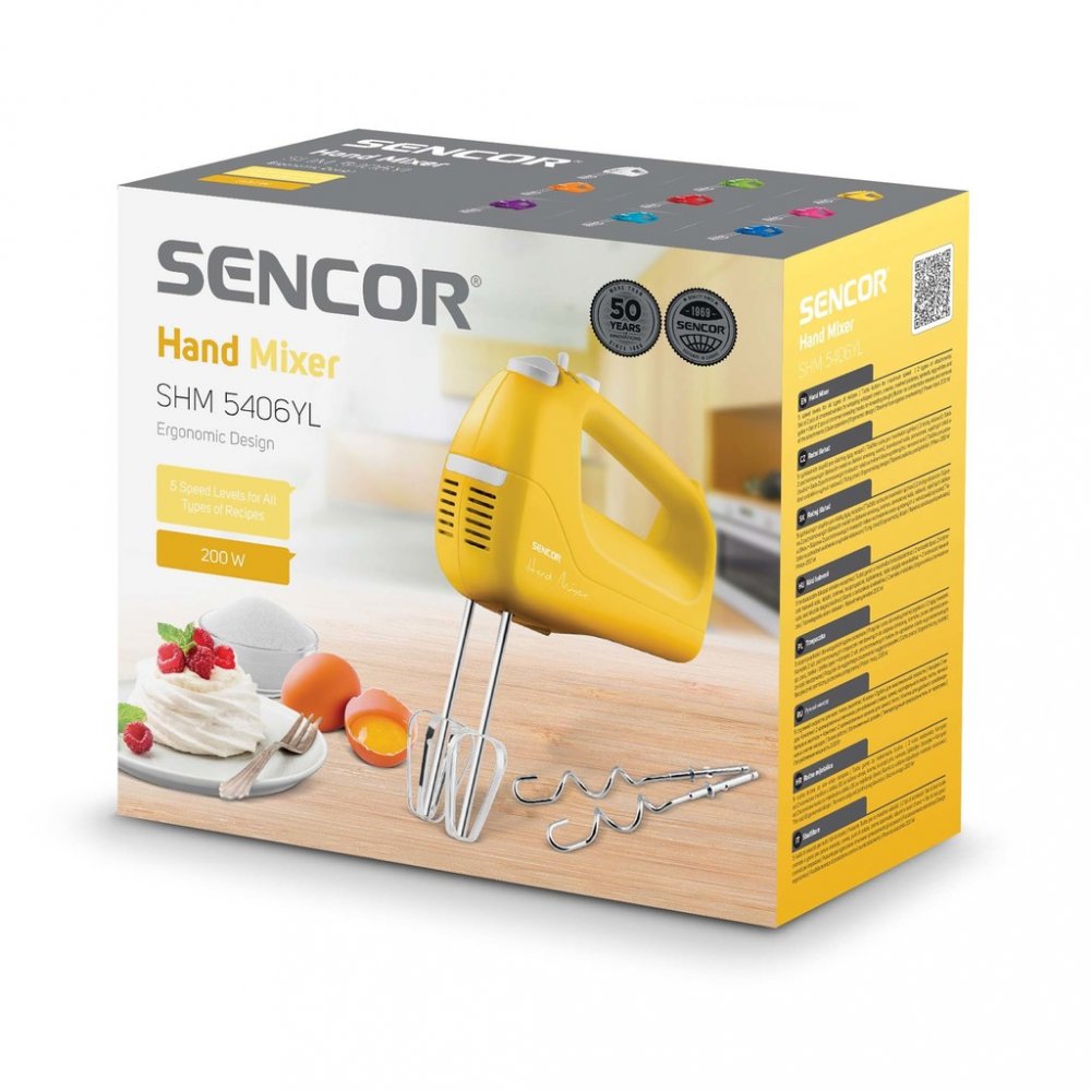 Spolehlivý ruční mixér Sencor vám usnadní práci při přípravě krémů, sněhu nebo těsta. Oceníte jeho kompaktnost a intuitivní ovládání. Je vybaven motorem o příkonu 200 W, který se nejlépe poradí s jednoduchými úkoly. SENCOR SHM 5406YL potěší 5 rychlostmi, které propůjčí zpracovávaným ingrediencím vždy výbornou konzistenci. Jeho maximální úroveň hluku v provozu činí 83 dB, což je srovnatelné s hluke...