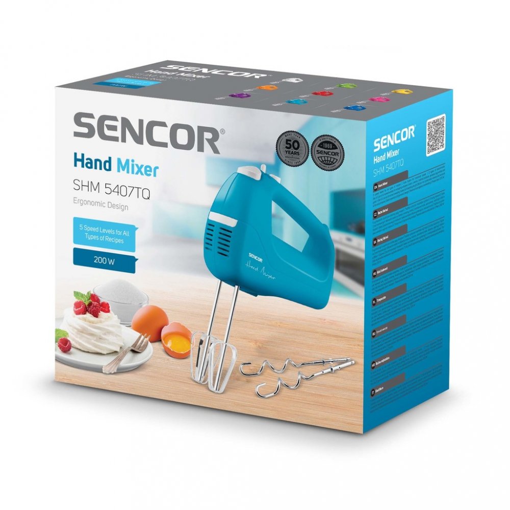 Praktický ruční mixér Sencor se stane vaším parťákem při přípravě krémů, sněhu nebo těsta. Oceníte jeho kompaktní rozměry a intuitivně umístěné ovládací prvky. Je vybaven motorem o příkonu 200 W, který je určen primárně pro jednoduché kulinářské úkony. SENCOR SHM 5407TQ potěší 5 rychlostmi, které propůjčí zpracovávaným ingrediencím vždy výbornou konzistenci. Jeho maximální úroveň hluku v provozu činí 83 dB, což je srovnatelné s intenzitou ruchu z ulice. Kromě samotného mixéru se v balení nachází také hnětací metly a šlehací metly. Elektrický mixér Sencor bude neocenitelným pomocníkem při vaření všech vašich oblíbených obědů i večeří. Klíčové vlastnosti ručního mixéru SENCOR SHM 5407TQ Elektrický mixér Sencor udělá radost všem kuchařům Připraví lahůdky v každé kuchyni díky hnětení a šlehání Ruční šlehač je klíčem k dokonalému sněhu při pečení moučníků SENCOR SHM 5407TQ potěší 5 rychlostmi Jeho maximální hlučnost je 83 dB Mísení surovin bude pro šlehací a hnětací metly hračkou Pro vysunutí metel máte k...