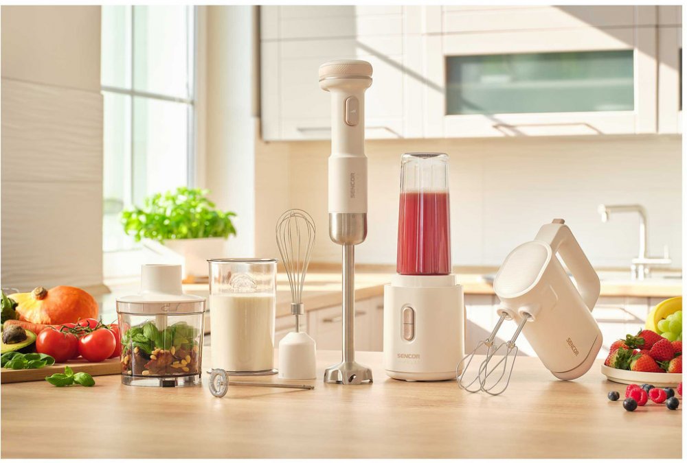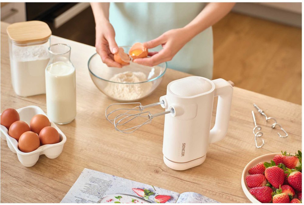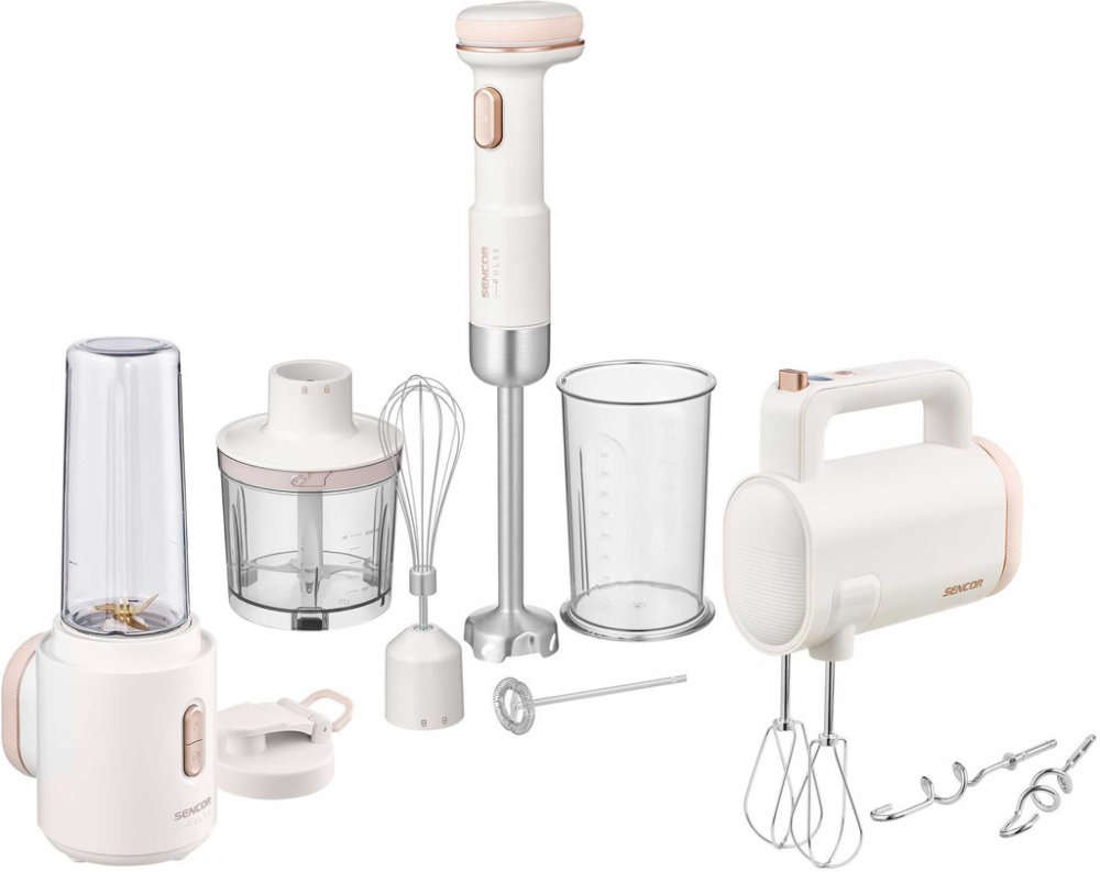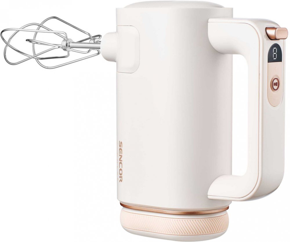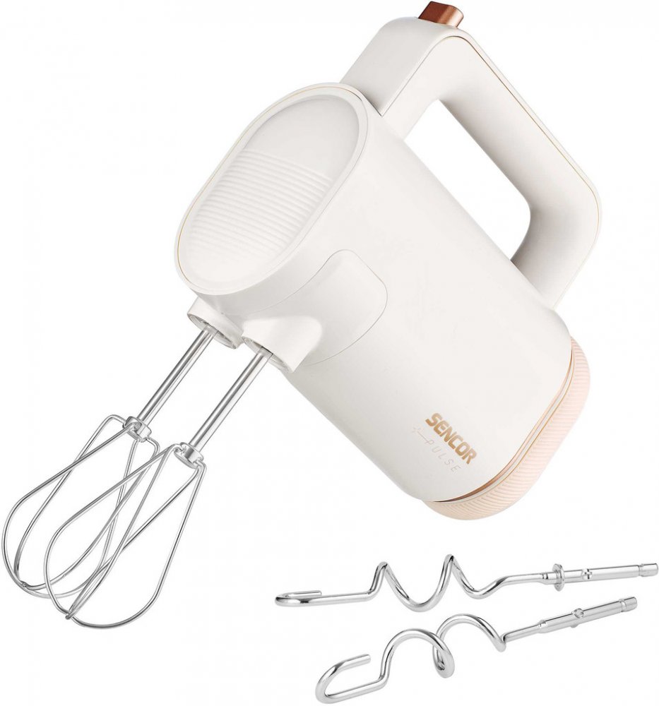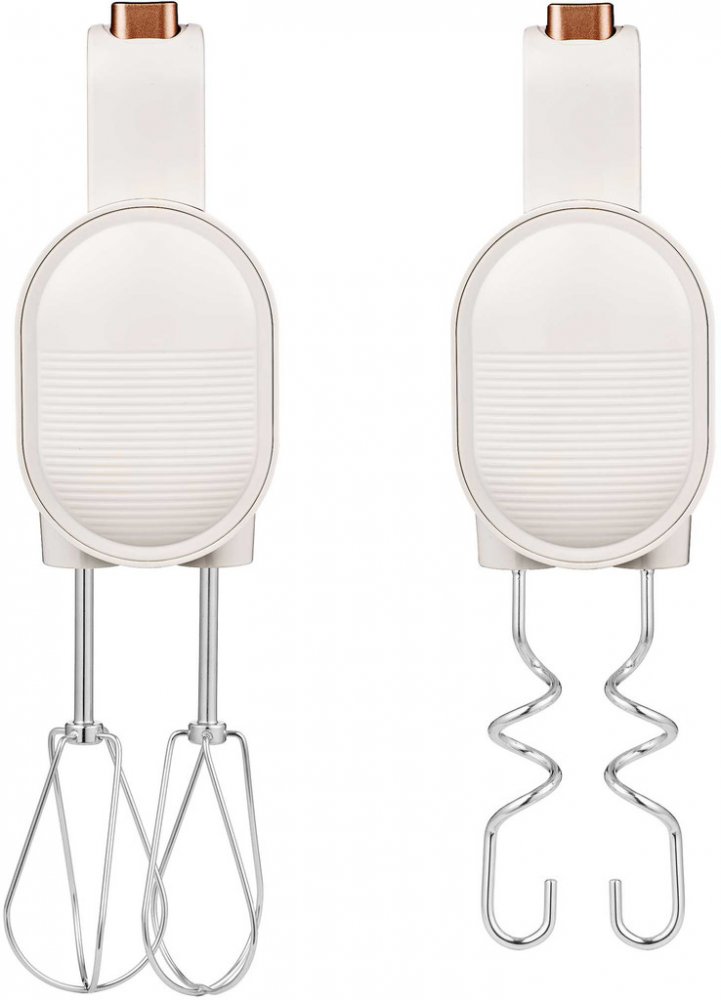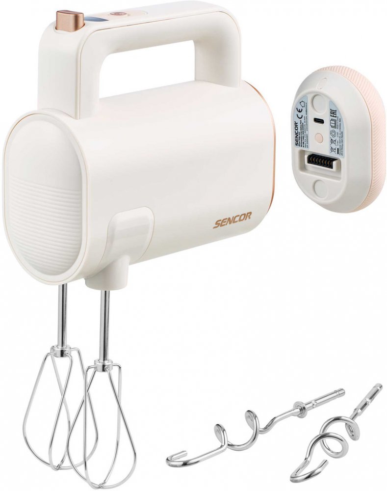 Obsah balení: Balení obsahuje: motorovou jednotku, baterii, 1 pár chromovaných šlehačů, 1 pár chromovaných hnětacích háků, nabíjecí kabel USB-C