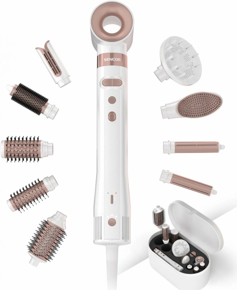 Sencor SHS 9200RS Artemiss + garance 60 dní vrácení peněz – Prémiový autorotační kulmofén Sencor s 10 nástavci, BLDC motorem a úložným kosmetickým kufříkem.. Kulma a styler Sencor SHS 9200RS Artemiss + garance 60 dní vrácení peněz – kategorie „Kulmy a stylery“