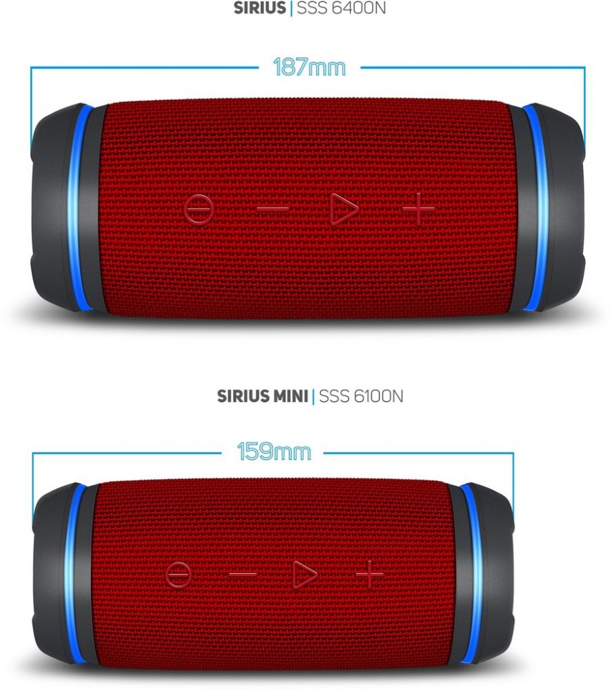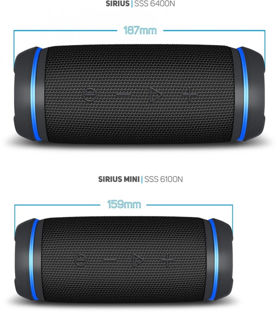Převratný SSS 6400N je kompaktní voděodolný reproduktor s 360° prostorovým zvukem. Umožňuje poslech oblíbené hudby ze smartphonu nebo tabletu prostřednictvím bezdrátového Bluetooth připojení do vzdálenosti až 15 m. Výkonný a čistý zvuk zajišťují dva reproduktory s maximálním výkonem 30 W a dva pasivní zářiče. Tento reproduktor je vybaven technologií NFC, která umožňuje snadné a rychlé připojení k vašemu smartphonu a technologii TWS umožňující současné připojení dvou reproduktorů. Tento reproduktor je voděodolný se stupněm krytí IPX6. Nemusíte se obávat poslechu hudby za nepříznivého počasí nebo vedle bazénu. Díky velké vestavěné 4000mAh dobíjecí baterii můžete poslouchat hudbu až 7 hodin. Jedinečný SSS 6400N je perfektním partnerem v jakékoli situaci a na jakémkoli místě.