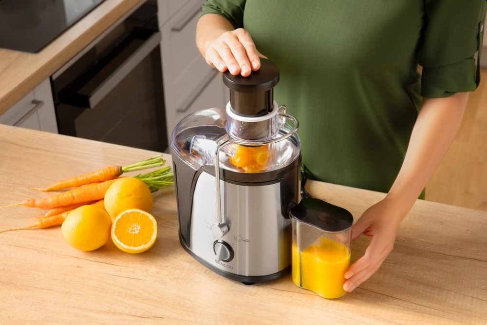 Odšťavňovač Moderní kompaktní design pro úsporu místa Široký plnící otvor (65 mm) pro pohodlné plnění Automatické oddělení dřeně Nádoba na dřeň o objemu 1,2 l Nádoba na šťávu s oddělením pěny Nerezové filtrační mikrosíto Transparentní víko pro dobrou viditelnost na průběh odšťavňování Vysoce účinný 400 W motor Uskladnění síťového kabelu v podstavci Trojitá ochrana: - Motor se spustí pouze, pokud j...