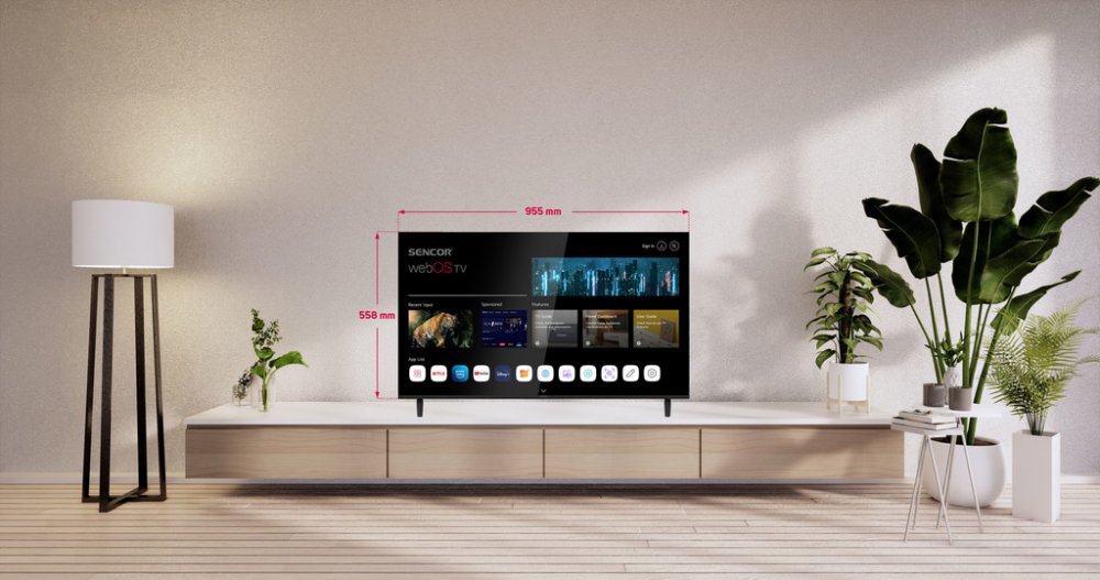 Sencor 109.0 cm D-LED 43 palců WebOS 2023 Černá Magický ovladač, základní ovladač, rychlý průvodce, stojan Dobré pro smíšené osvětlení 8 ms 3840 x 2160 16 : 9 60 1.5-2.0m optimální Základní HDR 4K HDR streamování připraveno 3 2 3 porty Snadná montáž (standardní VESA) 5.3 kg 200 x 200 Vyžaduje 105cm+ nábytek 955 x 558 x 74 mm G 77 kWh 53 kWh 2178516 Dobrý vestavěný zvuk