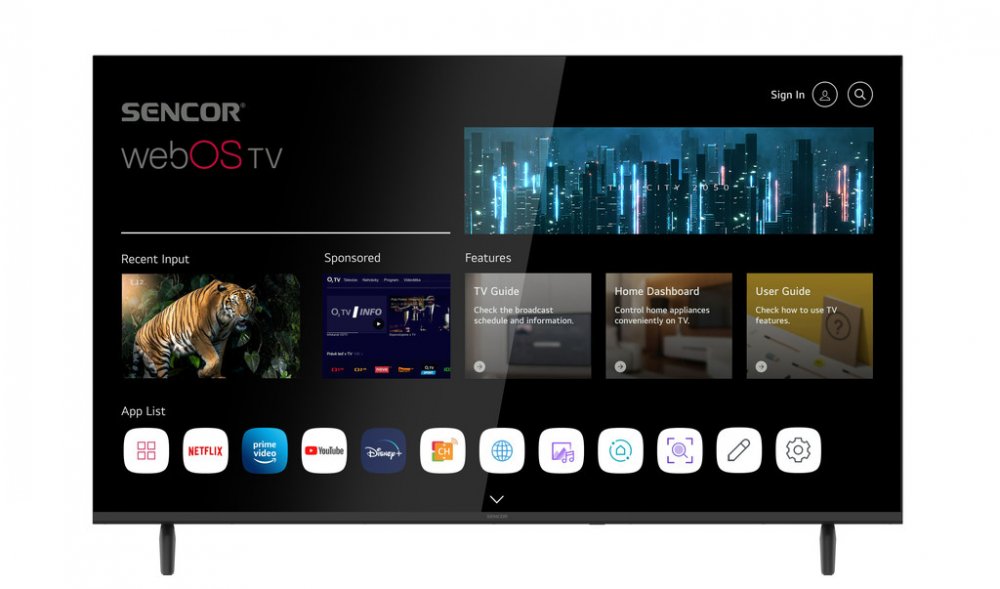 Systém WebOS, zkušenostmi ověřený operační systém vyvinutý společností LG, je velice uživatelsky komfortní, svižný a intuitivní. Pokud jde o zastoupení aplikací, ty nejdůležitější v tomto operačním systému nechybí. Rovněž máte přístup do filmoték Netflix či Amazon Prime video a nechybí ani přístup ke službám IPTV poskytovatelů. Systém běží na čtyř jádrovém procesoru ARM Cortex.