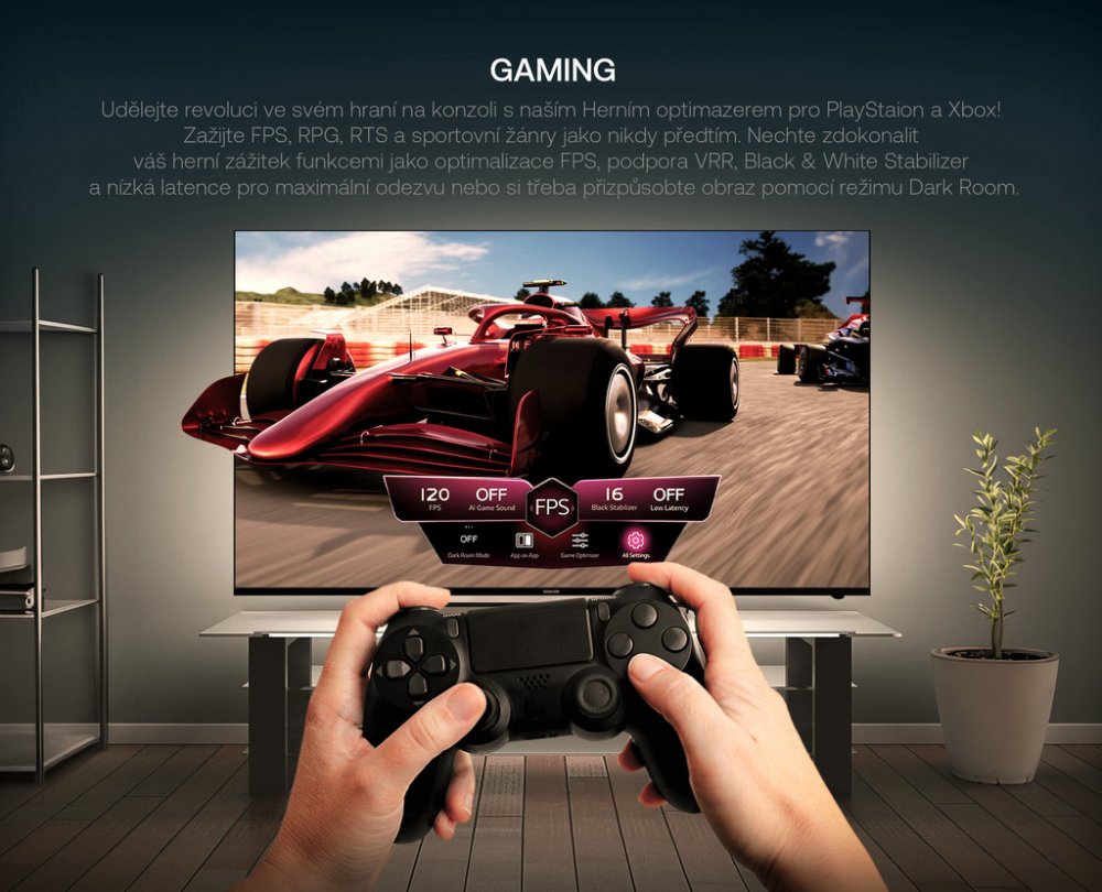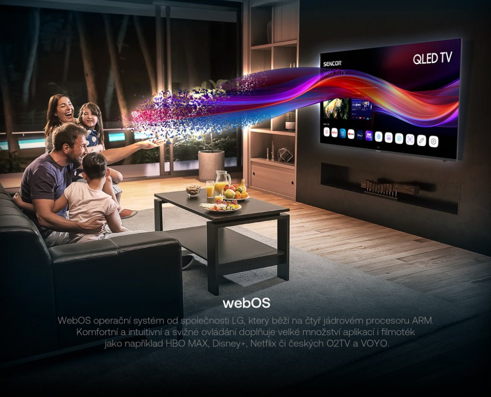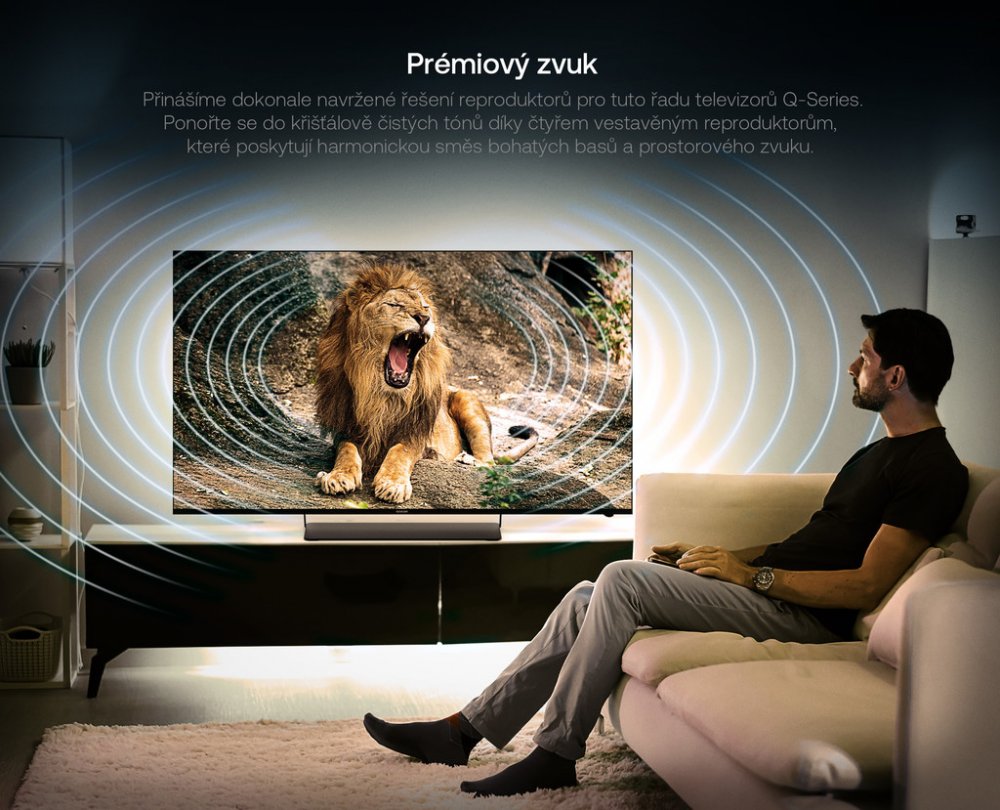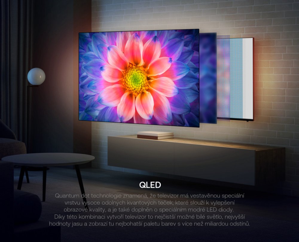 Televize SMART, QLED - Quantum Dot Technologie, Široký barevný gamut, Vysoký jas a kontrast, MEMC - Motion Estimate and Motion Compensation, HDR10 - Vysoký dynamický rozsah barev a jasu, HDR HLG - Hybridní logaritmická gama s vysokým dynamickým rozsahem, OBRAZ: UHD, Úhlopříčka displeje 127 cm (50"), Rozlišení 3840 × 2160 pixelů, D-LED, webOS SMART TV rozhraní.