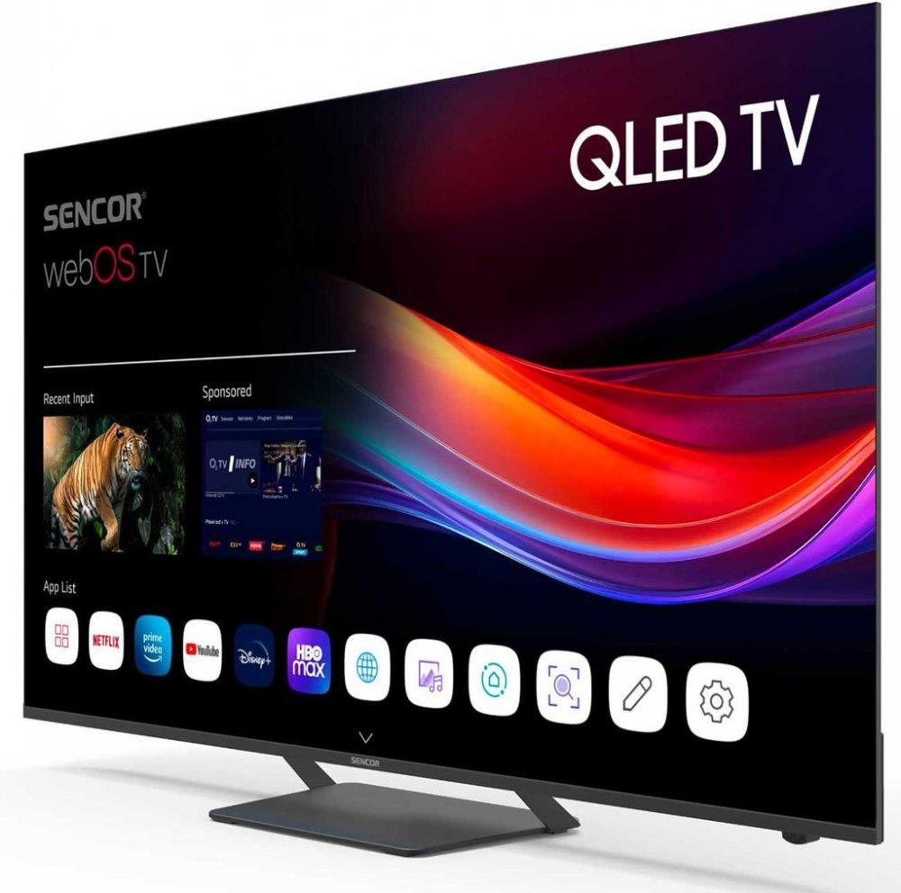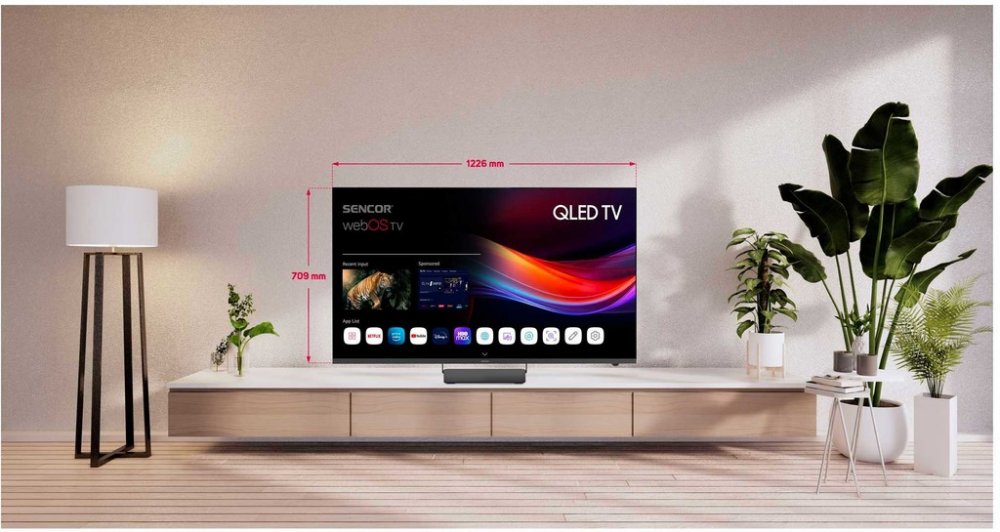Sencor 139 cm QLED 55 palců WebOS 2024 Černá Magický ovladač, základní ovladač, rychlý průvodce, stojan 3840 x 2160 16 : 9 60 1.5-3.0m optimální Standardní podpora HDR 3 2 3 porty Snadná montáž (standardní VESA) 15 kg 200 x 200 Vyžaduje 130cm+ nábytek 1227 x 711 x 88 mm 4K HDR streaming připraveno G 138 kWh 83 kWh