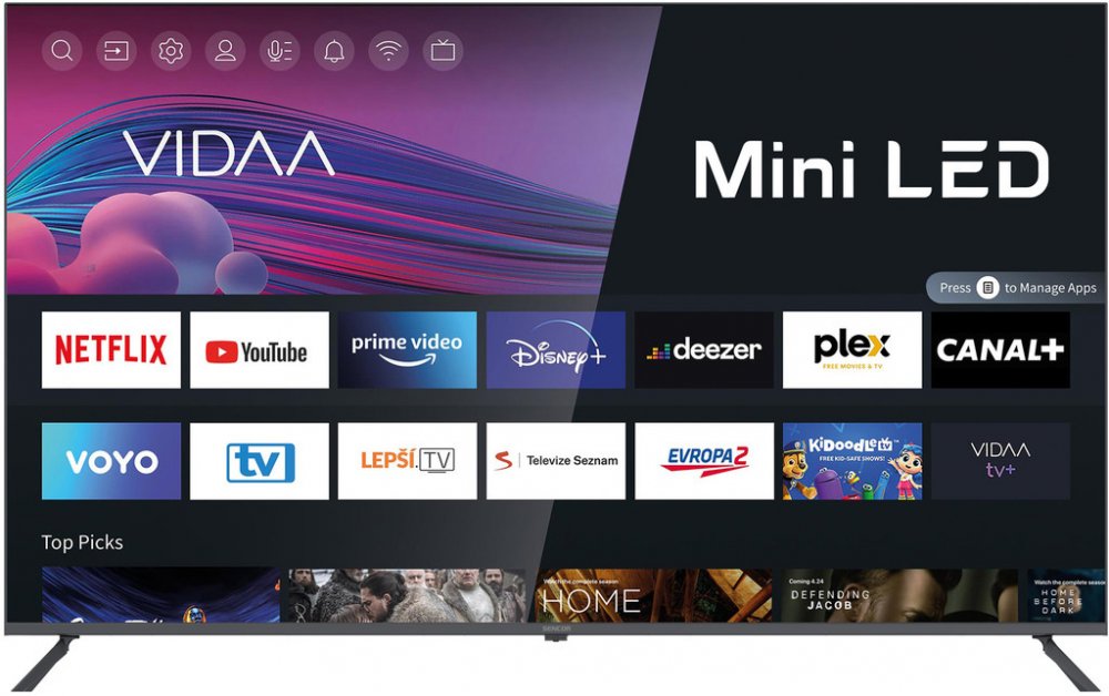 Sencor 164 cm Mini LED 65 palců Vidaa 2023 Černá Dálkový ovladač, návod k použití, stojan Dobré pro smíšené osvětlení 8 ms 3840 x 2160 16 : 9 50 2.0-3.5m optimální Silný HDR výkon 3 2 3 porty 180 W 96 kWh F 160 kWh 96 kWh Složitější (těžká/speciální držák) 20.6 kg 400 x 300 Vyžaduje 150cm+ nábytek 144.7×83.8×7.1 4K HDR streamování připraveno Doporučujeme soundbar