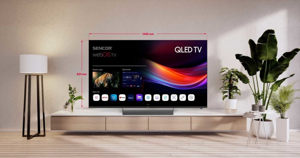 Sencor 164 cm QLED 65 palců WebOS 2024 Černá Magický ovladač, základní ovladač, rychlý průvodce, stojan 3840 x 2160 16 : 9 50 2.0-3.5m optimální Standardní podpora HDR 3 2 3 porty Snadná montáž (standardní VESA) 19.5 kg 300 x 200 Vyžaduje 120cm+ nábytek 1446 x 831 x 76 mm Starší platforma (může zpomalovat) Připraveno pro 4K HDR streamování G 231 kWh 110 kWh Vyžaduje externí systém