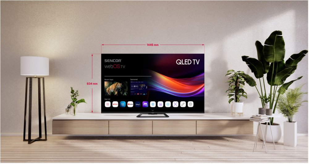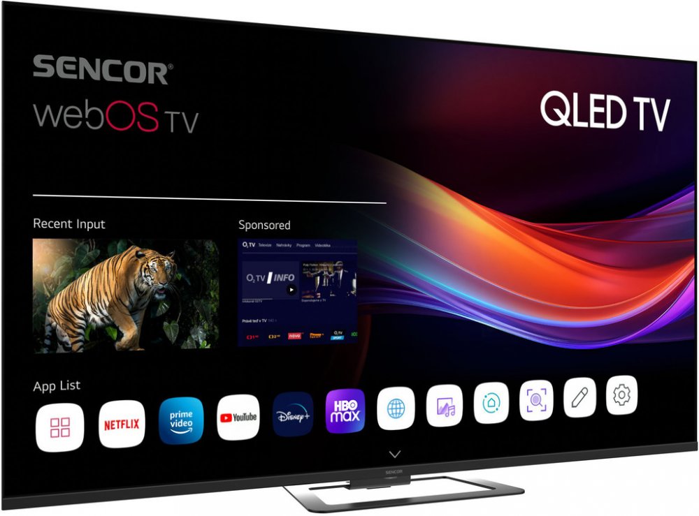 65' Sencor SLE 65Q871B - podrobné informace: QLED televizeSencor SLE 65Q871BQLEDQuantum dot technologie znamená, že televizor má vestavěnou speciální vrstvu vysoce odolných kvantových teček, které slouží k vylepšení obrazové kvality, a je také doplněn o speciálním modré LED diody. Díky této kombinaci vytvoří televizor to nejčistší možné bílé světlo, nejvyšší hodnoty jasu a zobrazí tu nejbohatší paletu barev s více než miliardou odstínů.MEMC a HDRMotion Estimate and Motion Compensation (MEMC) je technologie, která se snaží eliminovat tzv. stopy pohybu. Televizory s touto technologií vynikají lepším a rychlejším přechodem mezi jednotlivými snímky, což je důležité při sledování akčních scén nebo sportovních utkání. HDR10 a HDR ALG se postará o vysoký dynamický rozsah barev a jasu.webOSJe operační systém od společnosti LG, který běží na čtyř jádrovém procesoru ARM. Komfortní a intuitivní a svižné ovládání doplňuje velké množství aplikací i filmoték jako například HBO MAX, Disney+, Netflix ...