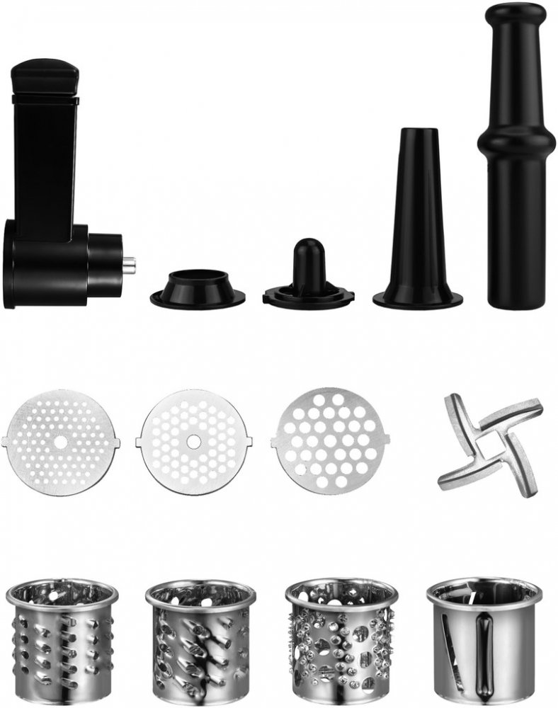 Pripravte si oblibena masova jidla, napriklad skvely burger, tatarsky biftek ci domaci klobasy. Strouhejte a krajejte suroviny na pripravu omacek a salatu. Pomuze vam univerzalni mlynek na maso SMG 5400BK od znacky SENCOR. Pomocnika v modernim, prostorove uspornem designu umistite na kuchynskou linku, kde bude bezpecne stat na protiskluzovych nozickach. K mleti je pripraven krizovy nuza 3 mleci kotouce ruzne hrubosti. Muzete vyuzit take 3 struhadla, krajec platku a nastavce na pripravu klobas a kebbe. Praci vam zjednodusi nasazovaci plnici miska a pechovadlo.